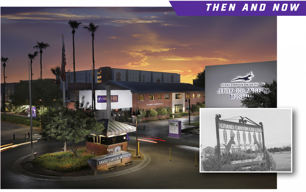 GCU History Page | The GCU story | Grand 'Construction' University | A campus culture like no other | GCU timeline | Then and now | Did you know…? | Brian Mueller and the 'Phoenix 50' | Pioneering online education | Rise of athletics | The next 75 years