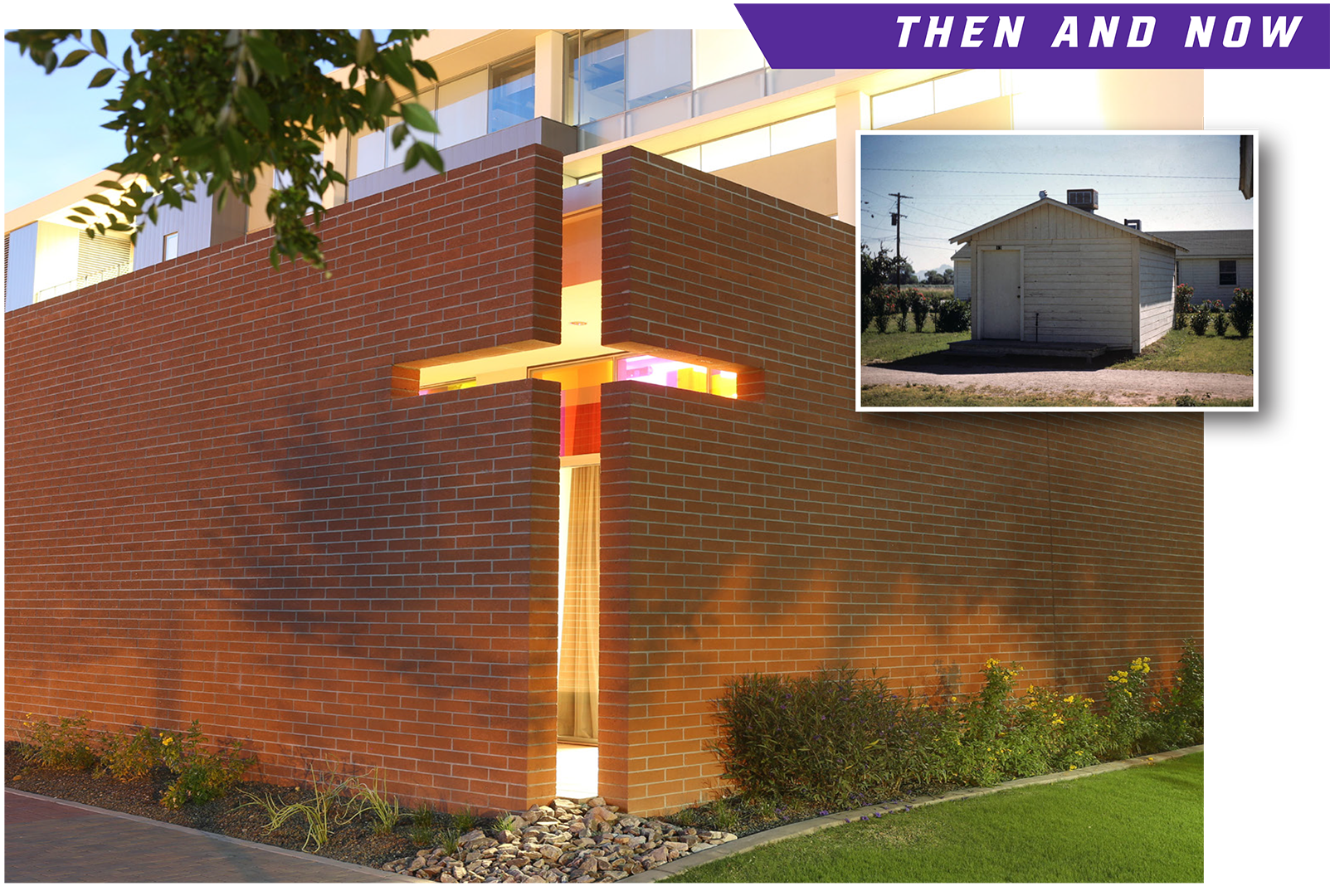 Featuring two antelopes, the front entrance sign in the 1960s has evolved into an expansive new entrance embodying the university’s growth, vision and welcoming spirit. -