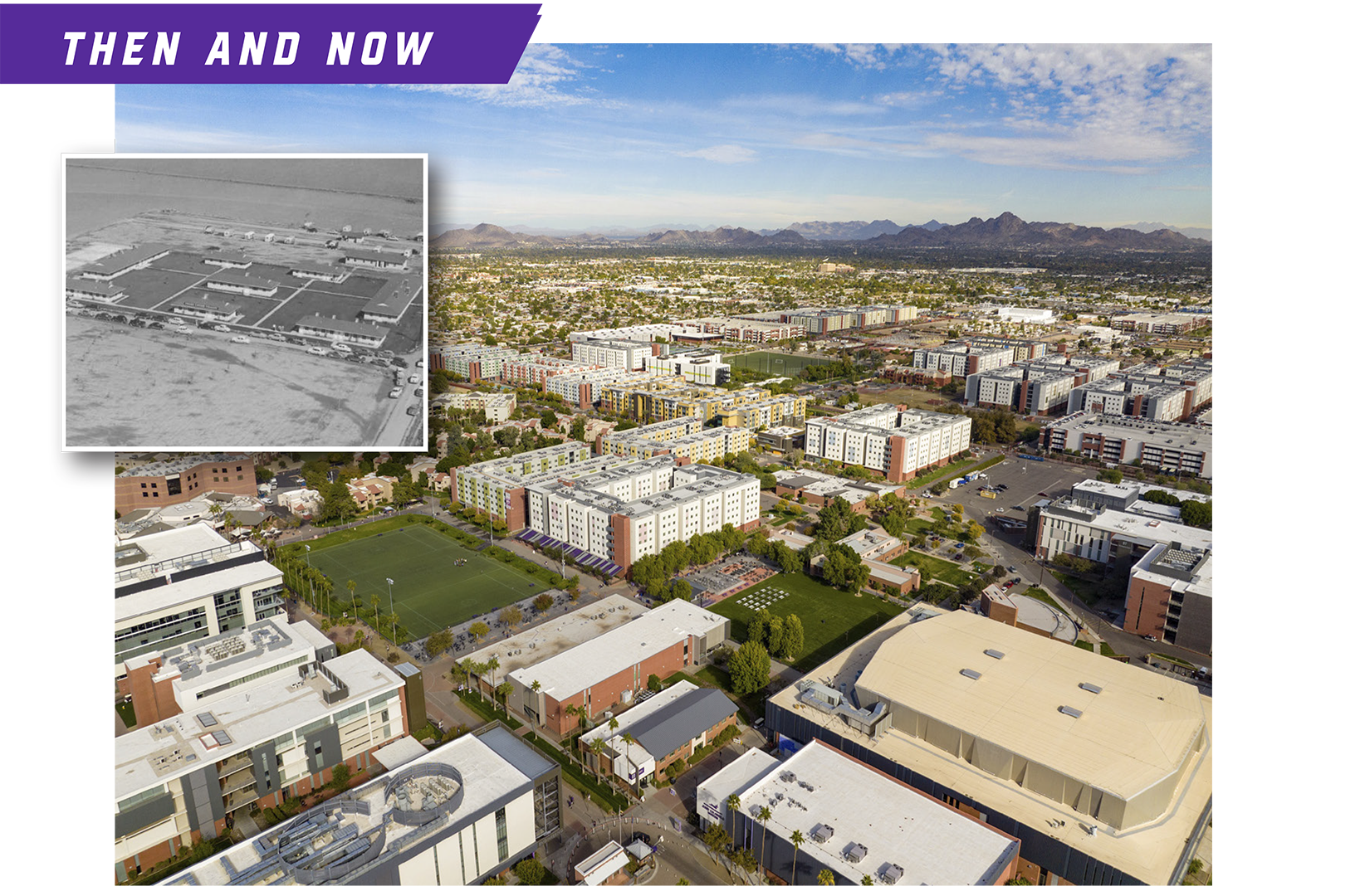 The campus skyline may look a lot different these days – new buildings, bigger crowds, more purple everywhere. But if you look a little closer, you’ll see plenty that hasn’t changed: the same spirited events, the same school pride and the same sense of community that have been part of GCU since day one. These then-and-now photos show while the campus keeps growing, the heart of GCU remains the same.