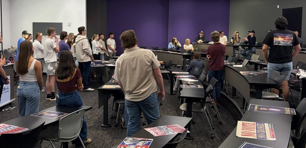 It was a regular Thursday evening meeting like any other. Students gathered in a Colangelo College of Business lecture hall to discuss events affecting the nation.