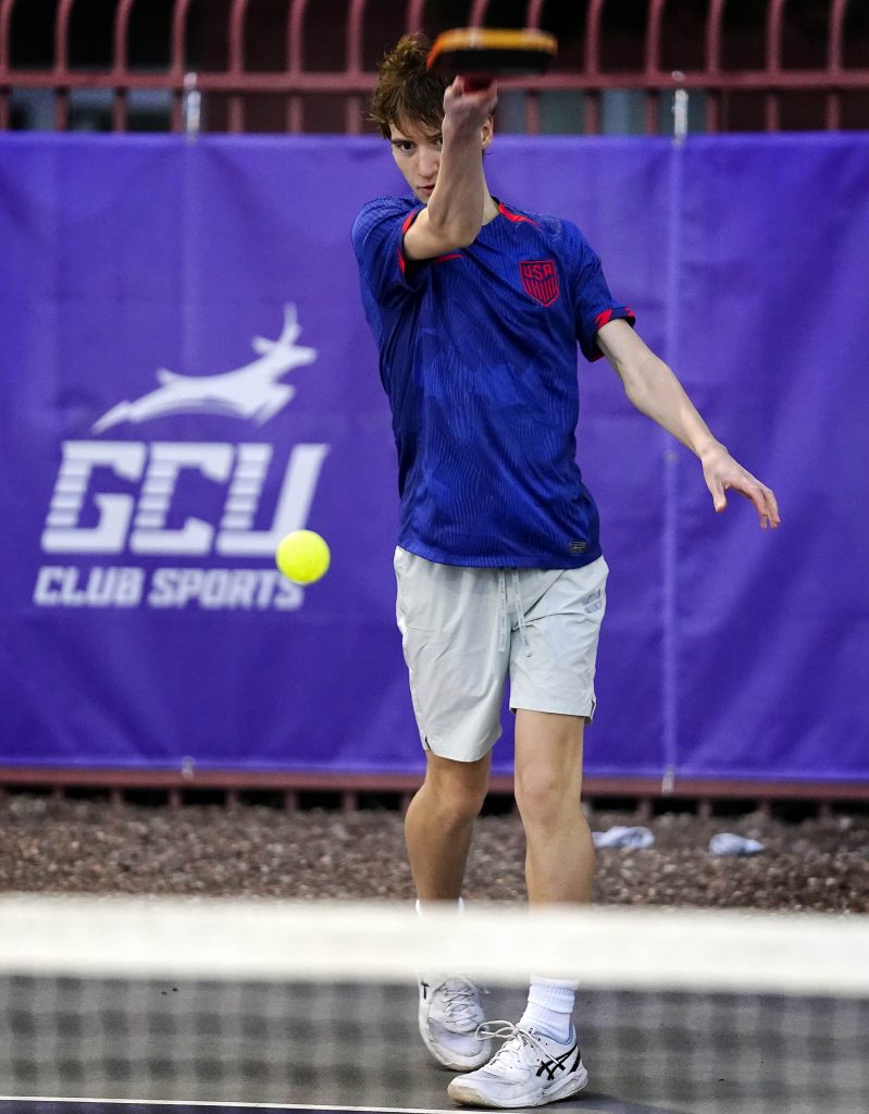 “I was in soccer and track and that’s all about your legs, so with pickleball, I can use my hands,” he said, warming up for a match at Grand Canyon University. “I like how you can play slow or fast, depending on the game.”