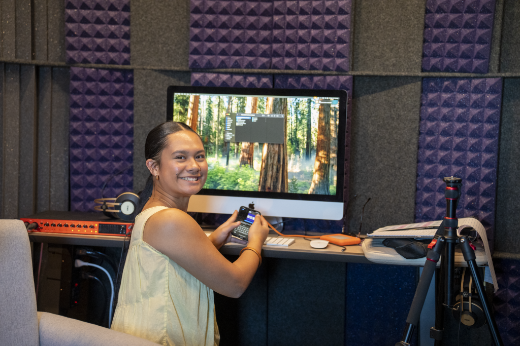 In November, she met with Hahn, Ward and sophomore podcast producer Selah Fronda in the Technology Building’s podcast rooms. They hit “start,” and with no agenda, began recording the first episode.
