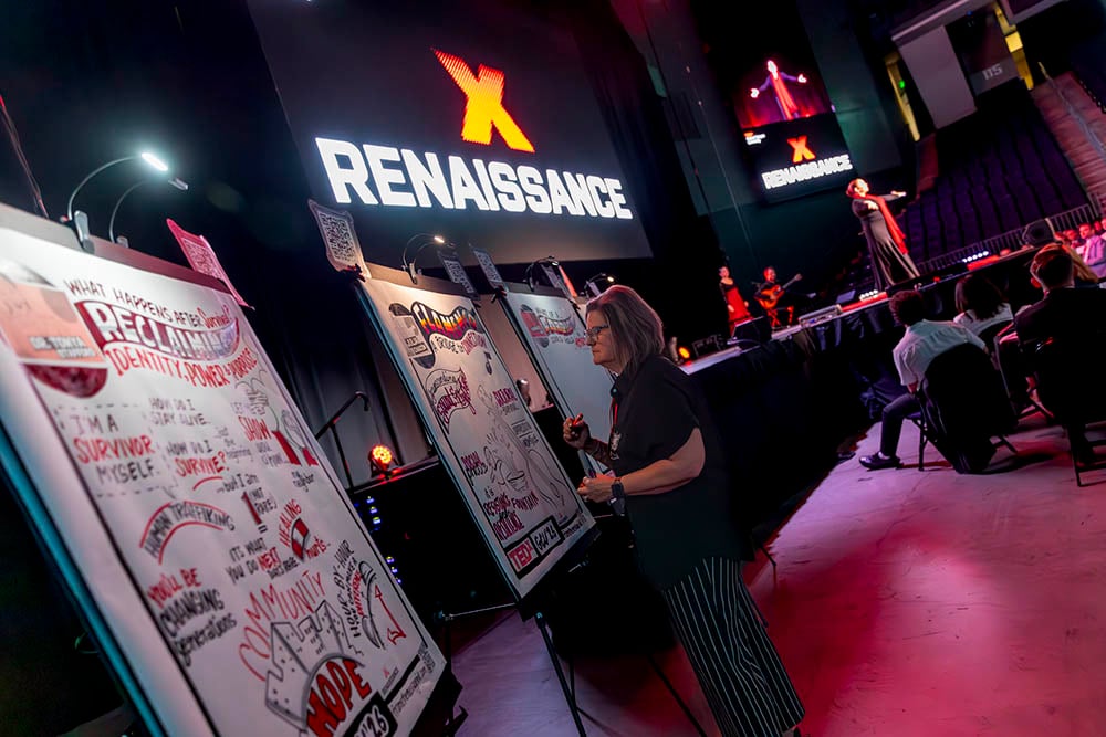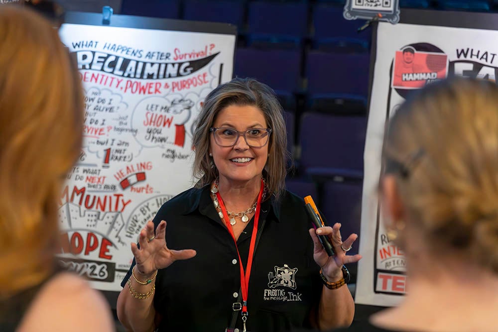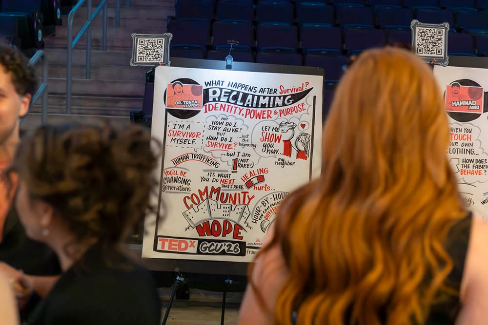 An artist shares her drawings of the evening's talks, done live, during TEDxGCU. April 10, 2026. -