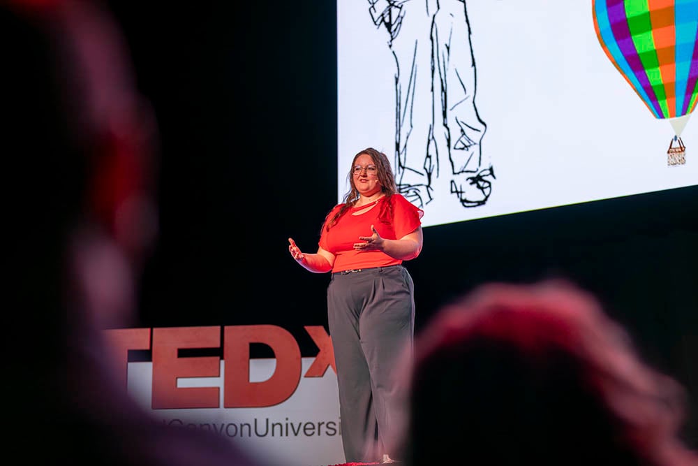 Student speaker Devin Flanagan spoke about turning curiosity into action during her TEDxGCU talk. April 10, 2026. -