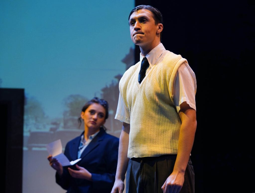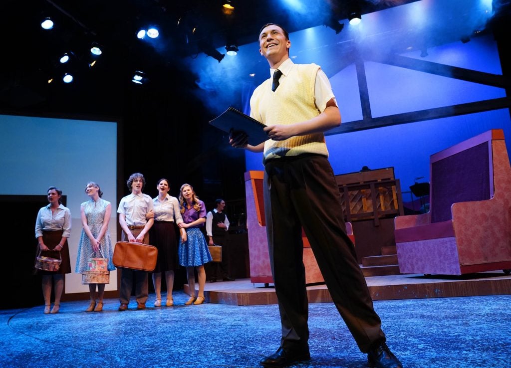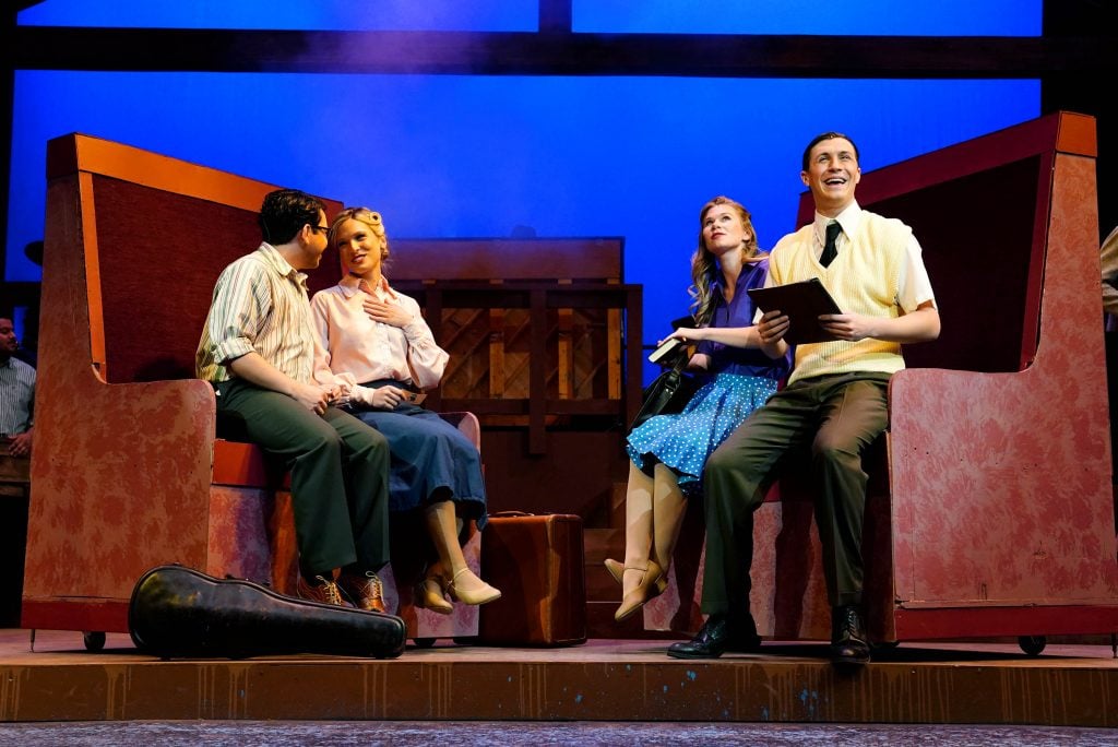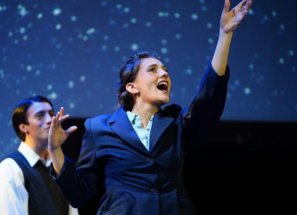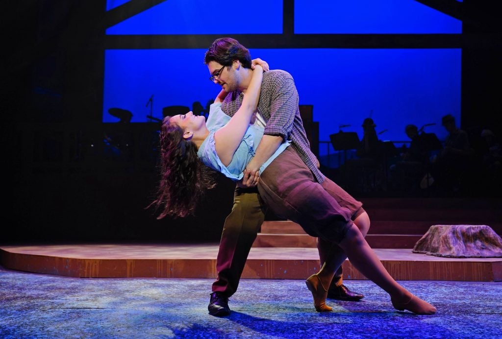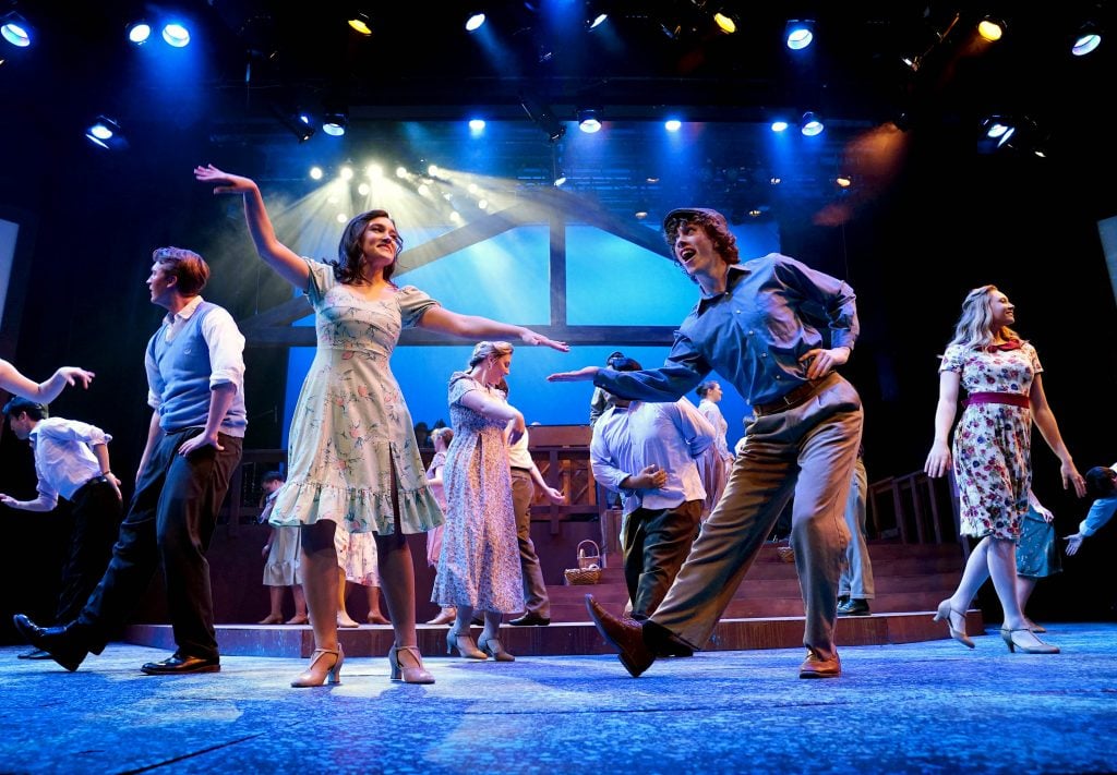 Carter Giannetti plays Billy Cane and Maiya Morhweis is Margo Crawford in “Bright Star” at Ethington Theatre. -