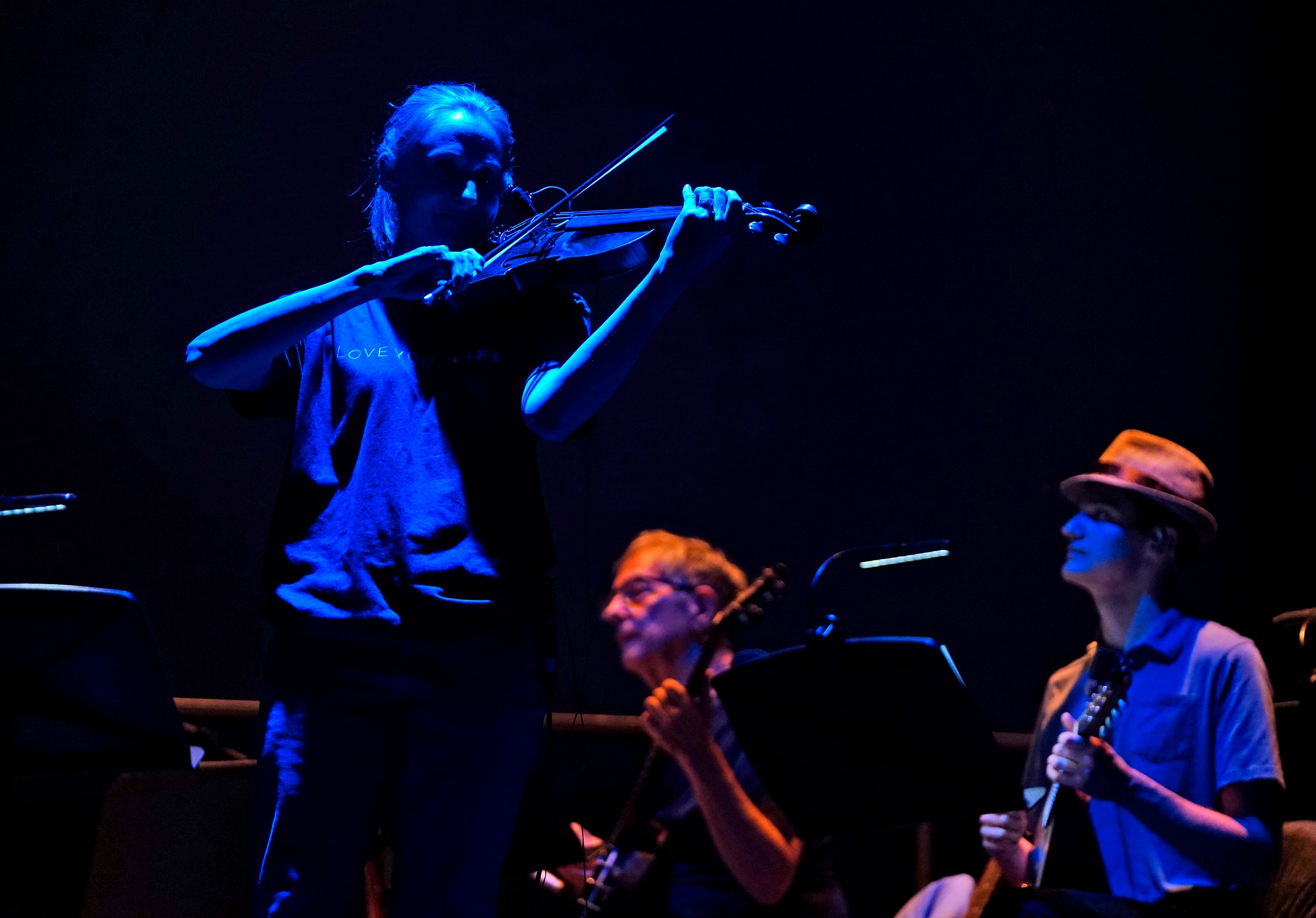 Violinist Heide Riggs performs during a rehearsal for Bright Star” at Ethington Theatre on March 3, 2026. -