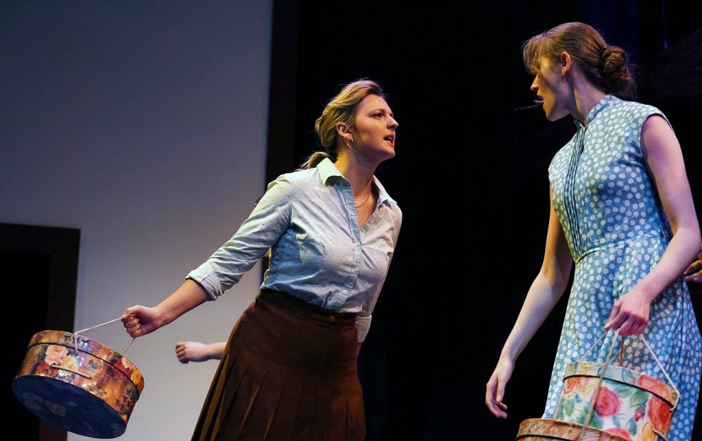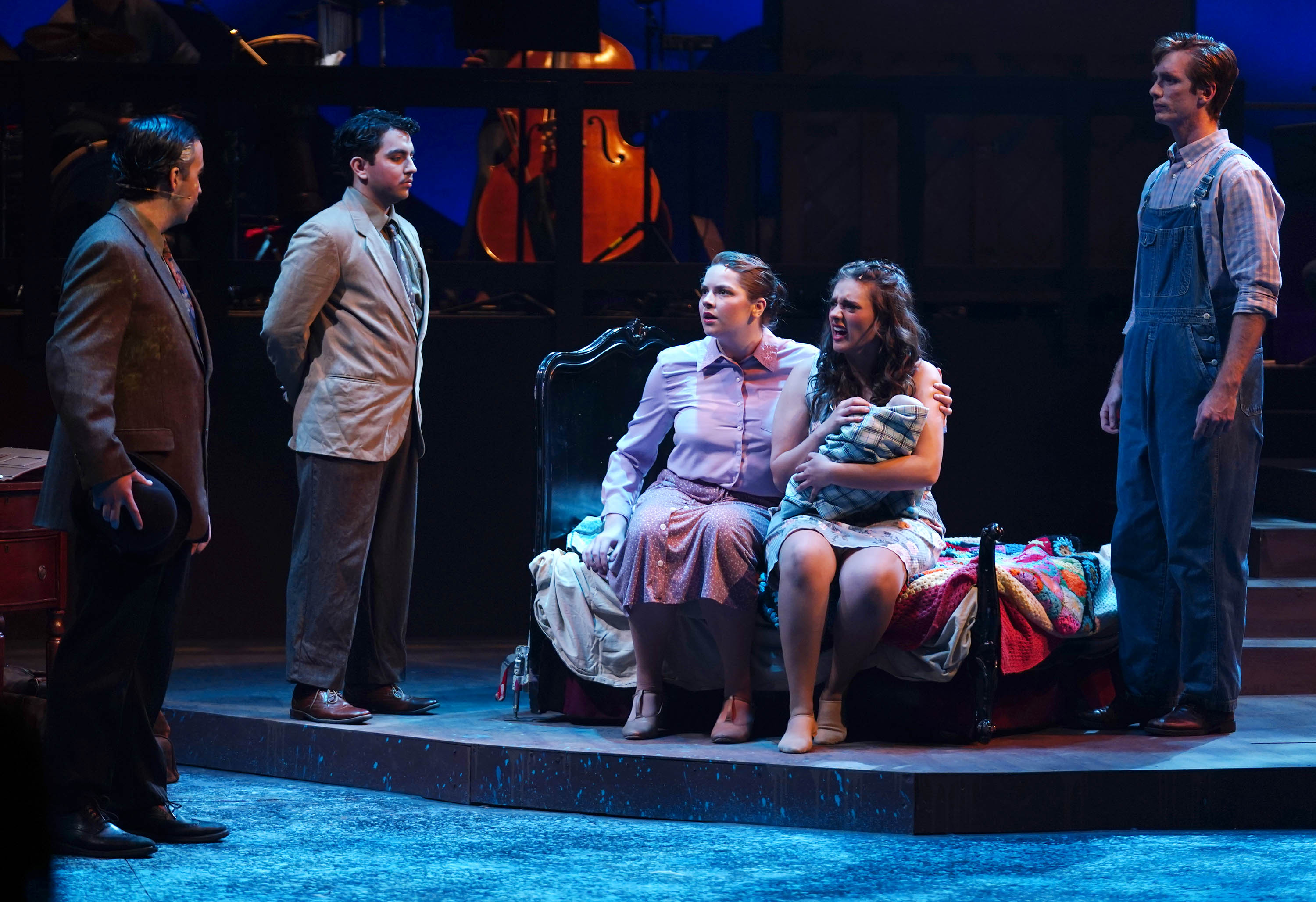 Alice Murphy (played by Kailey Mazur, center) protects her baby in “Bright Star” at Ethington Theatre. -