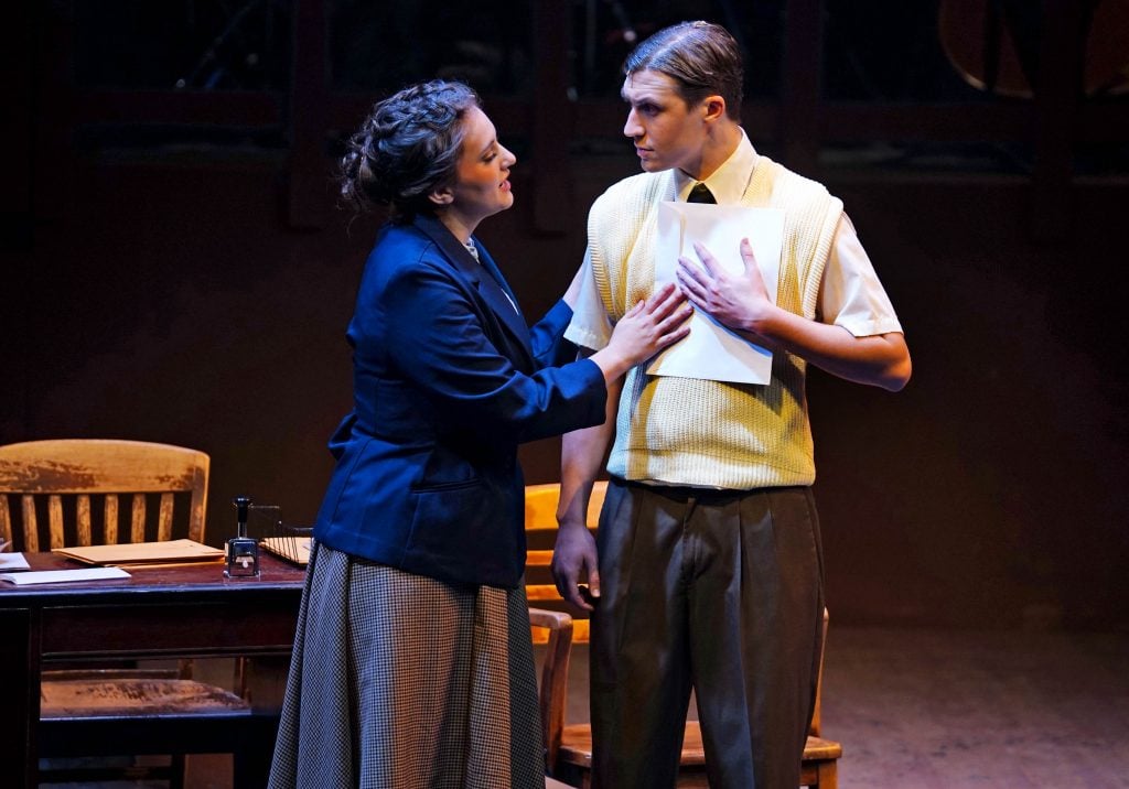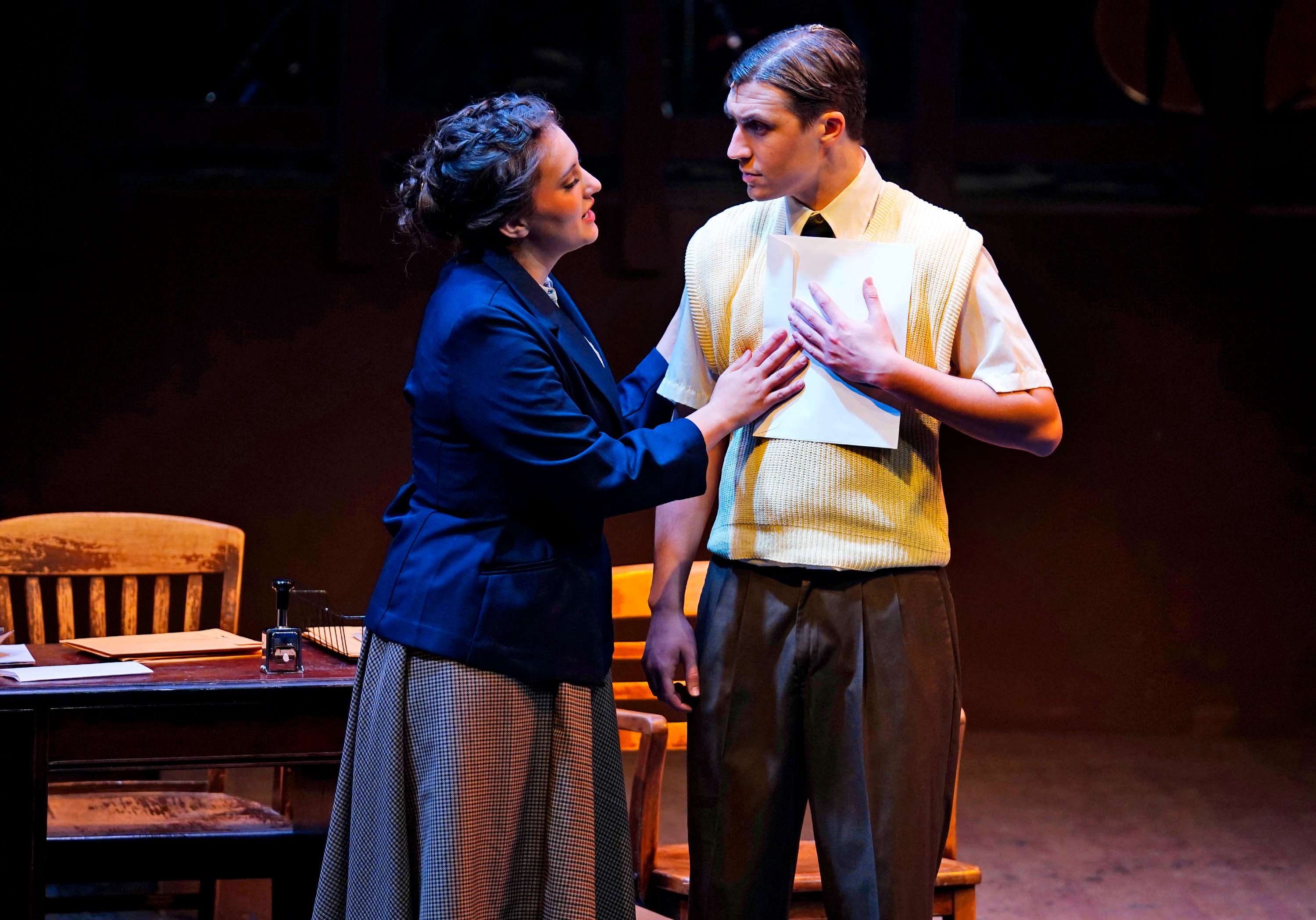 Kailey Mazur portrays Alice Murphy and Ben Sparling plays Dr. Norquist in the theatre department’s production of “Bright Star” at Ethington Theatre. -