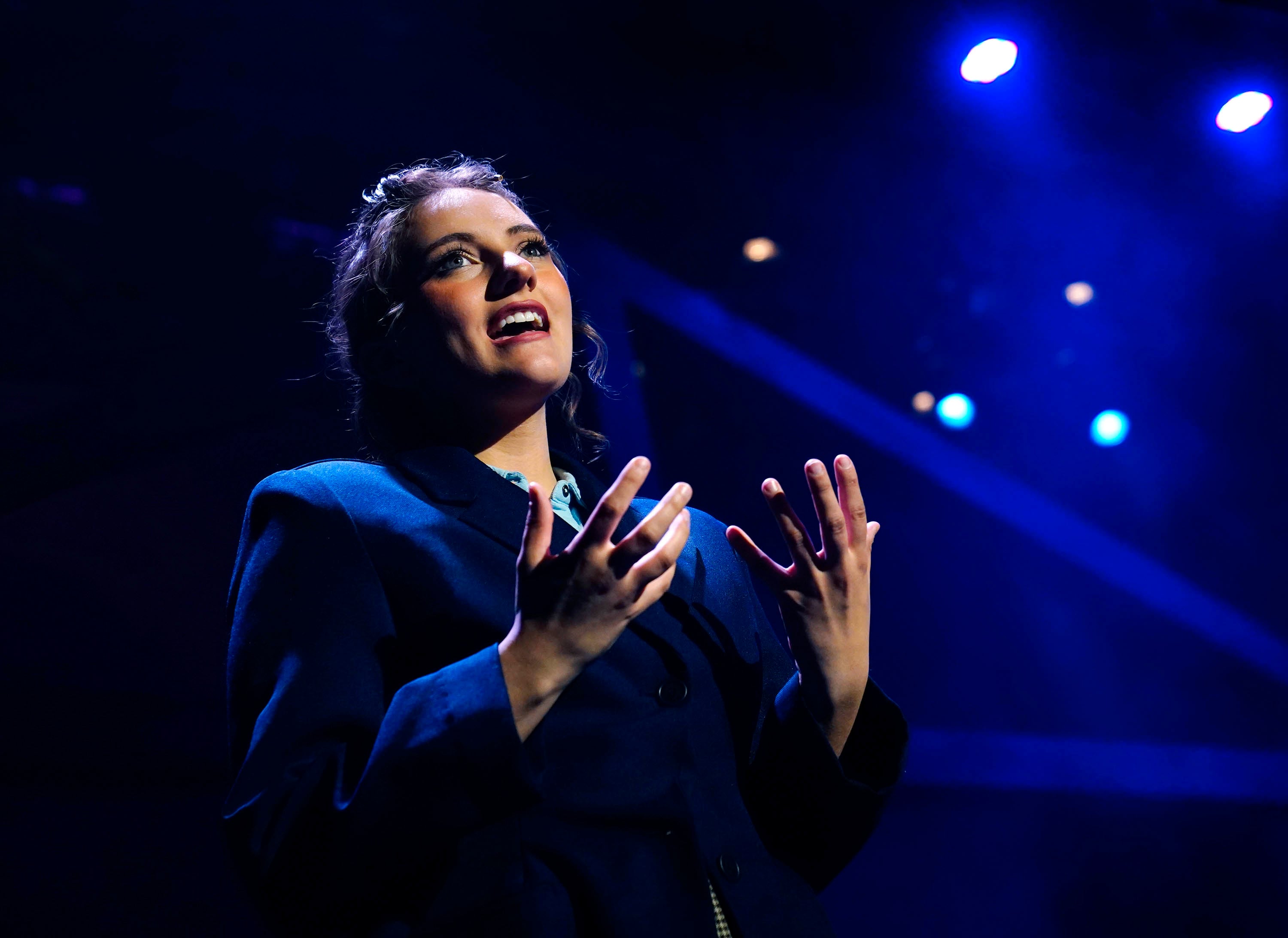 Kailey Mazur, who plays Alice Murphy, performs during a rehearsal for the theatre department’s production of “Bright Star” at Ethington Theatre on March 3, 2026. -