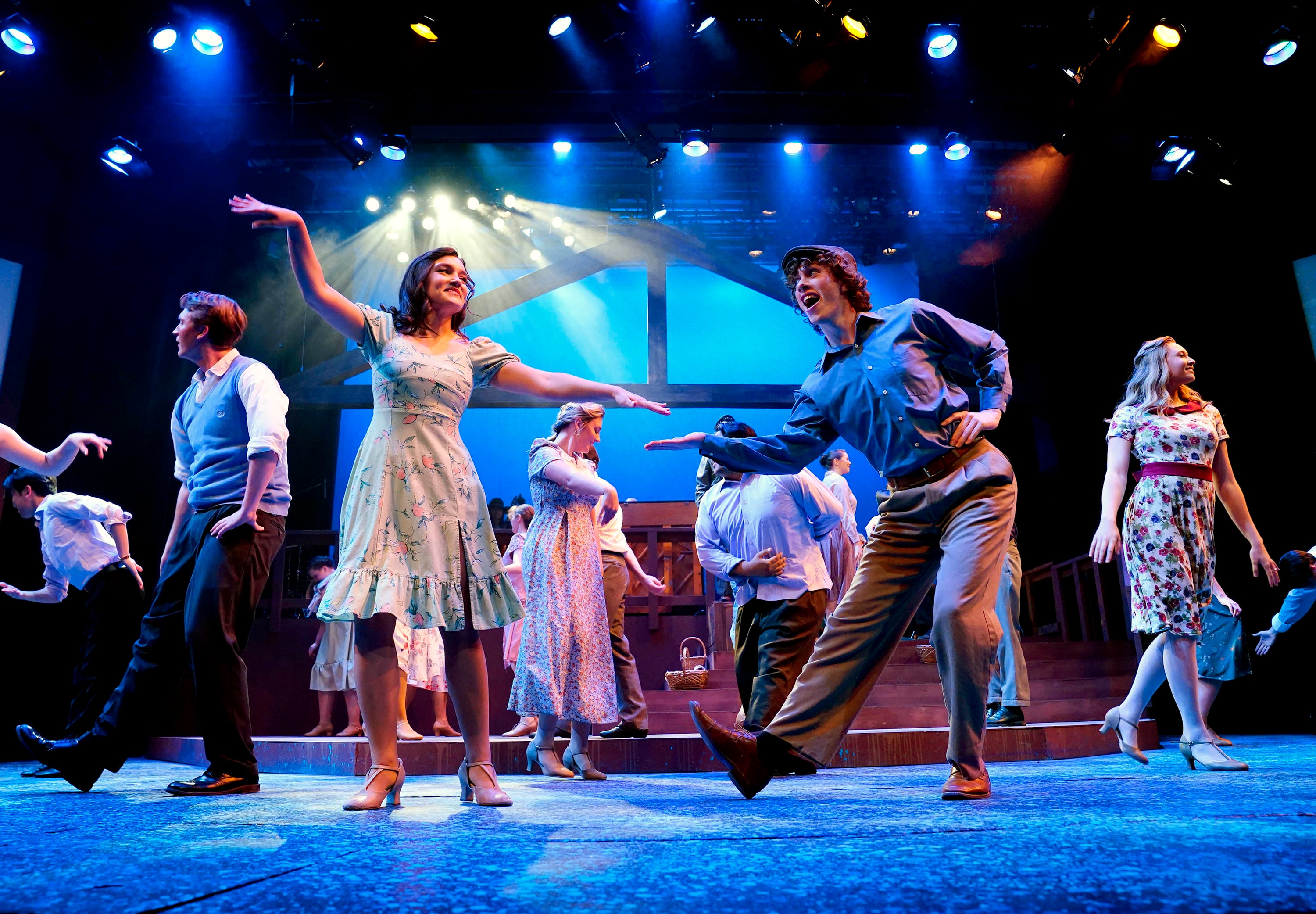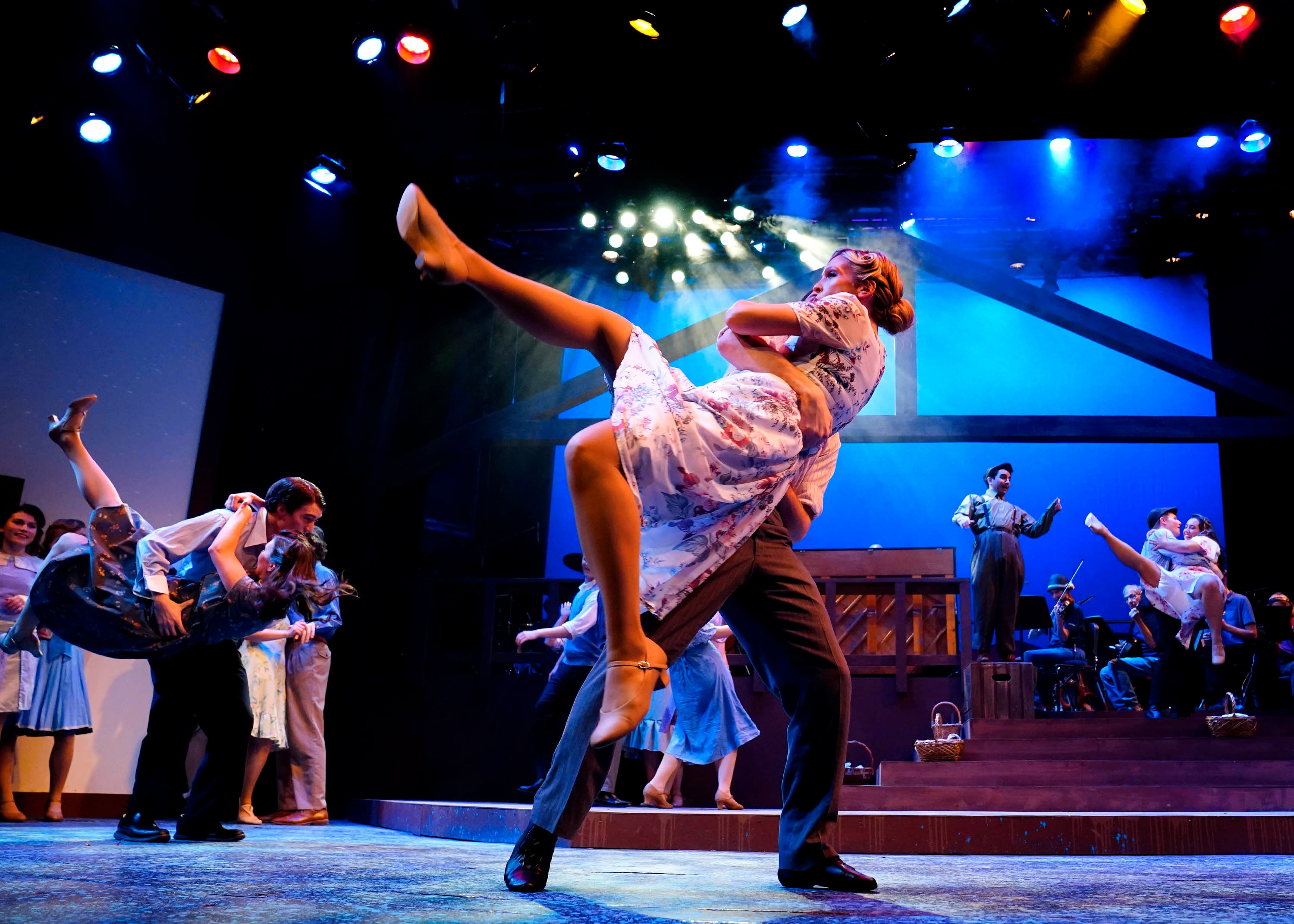 Cast members rehearse a dance number on March 3, 2026, for "Bright Star" at Ethington Theatre. -