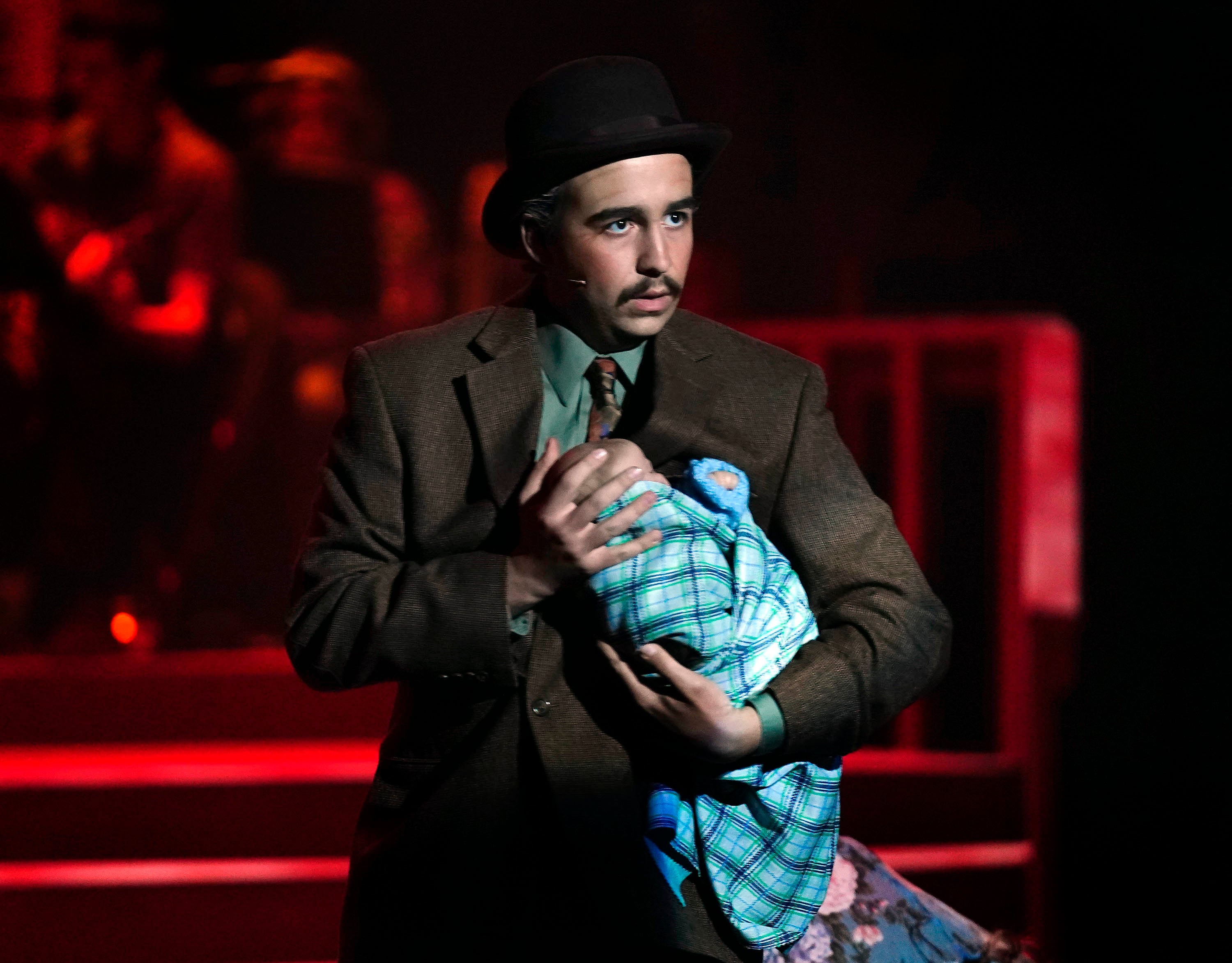 Caleb Moran, as Mayor Josiah Dobbs, during a rehearsal for the theatre department’s production of “Bright Star” at Ethington Theatre on March 3, 2026. -