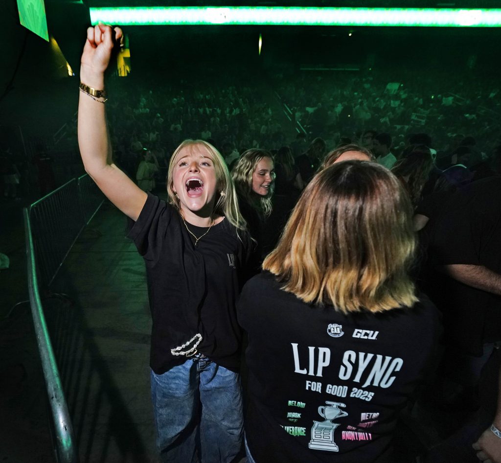 Students are excited for the start of the Canyon Activities Board’s "Wicked"-themed Lip Sync at Global Credit Union Arena on Nov. 13, 2025. -