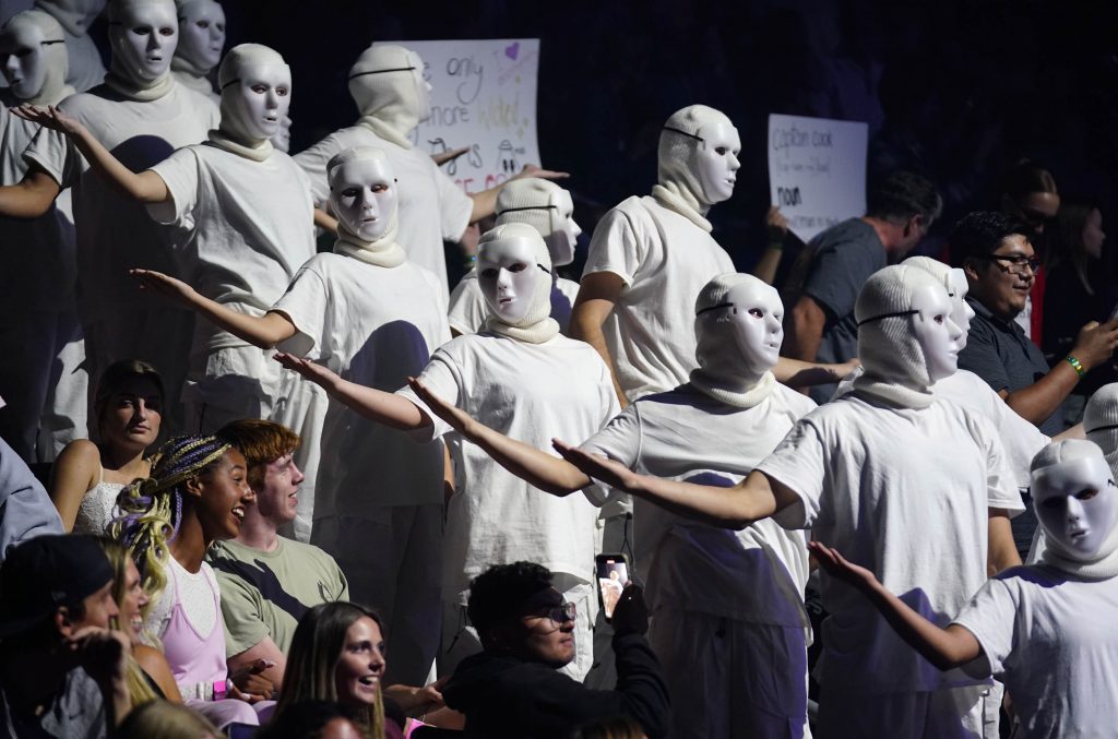 Team Mask On makes its entry during the start of the Canyon Activities Board’s "Wicked"-themed Lip Sync at Global Credit Union Arena on Nov. 13, 2025. -