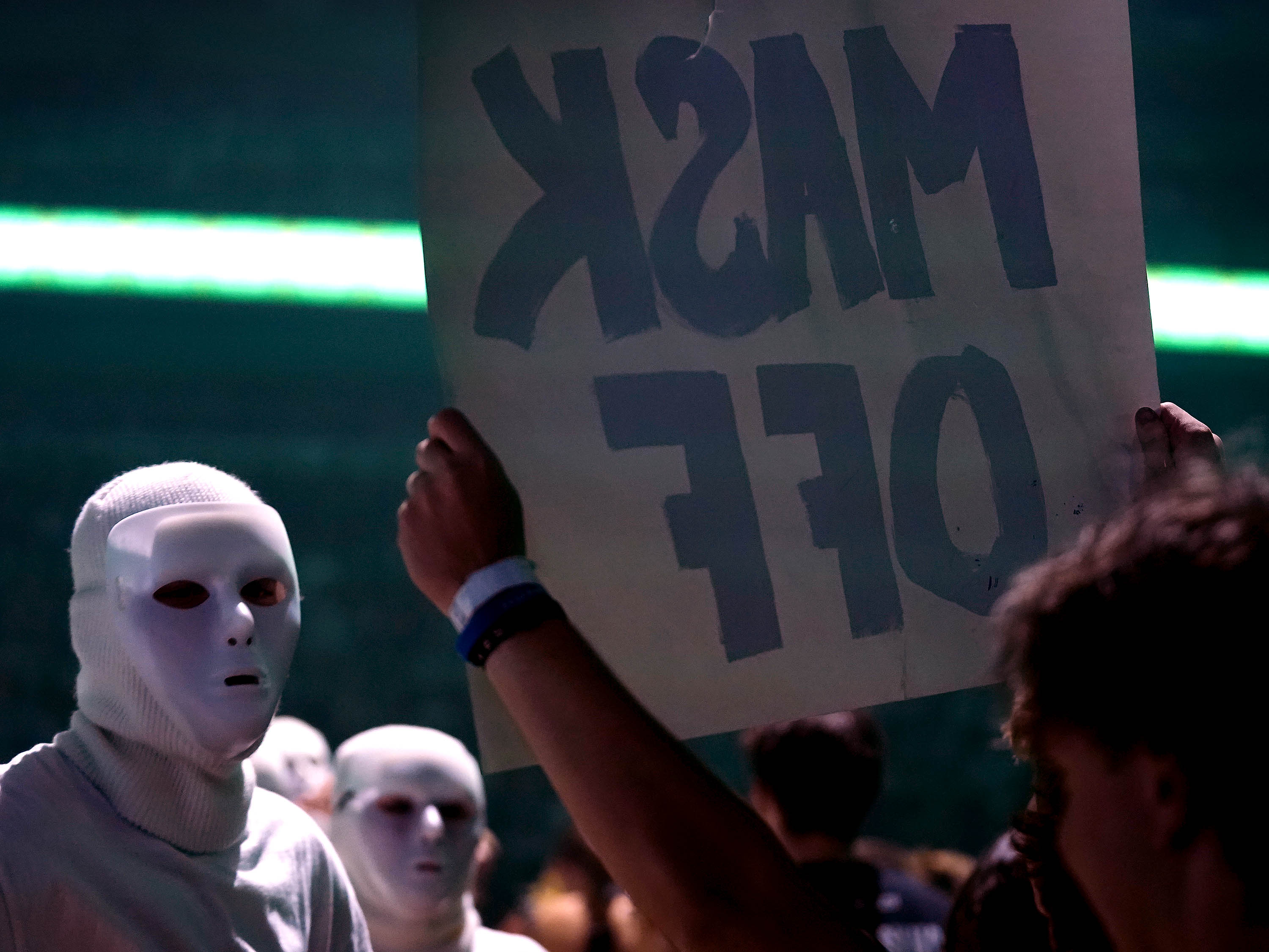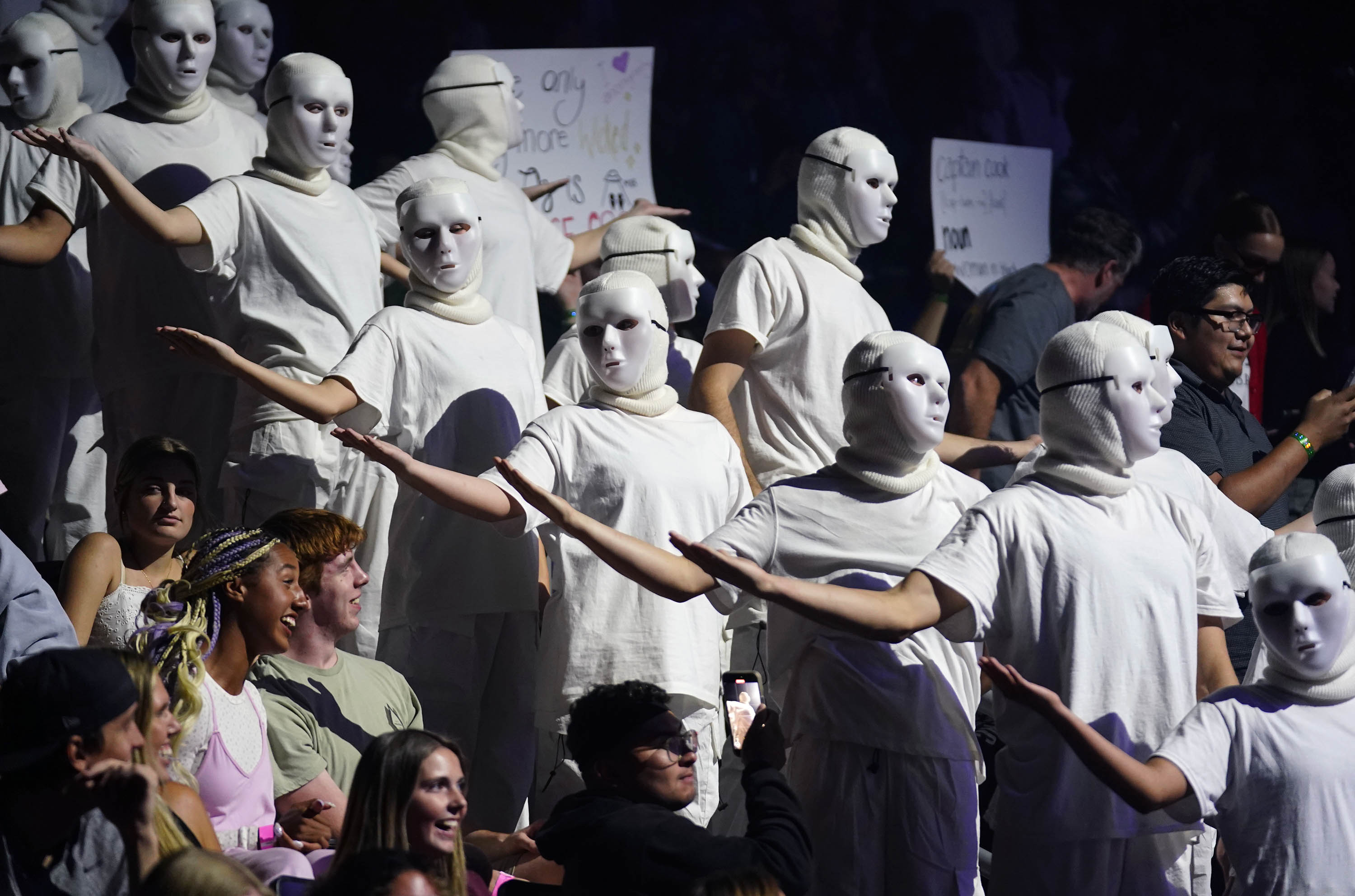 Students show their support for team Mask Off during the Canyon Activities Board’s "Wicked"-themed Lip Sync at Global Credit Union Arena on Nov. 13, 2025. -
