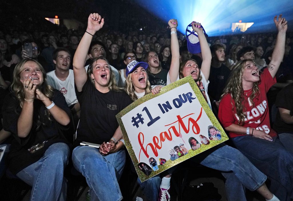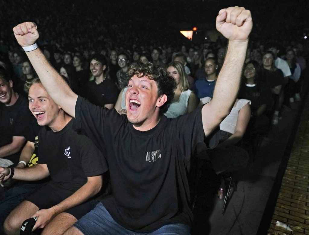 Students get excited as the clock counts down to the start of the Canyon Activities Board’s "Wicked"-themed Lip Sync at Global Credit Union Arena on Nov. 13, 2025. -