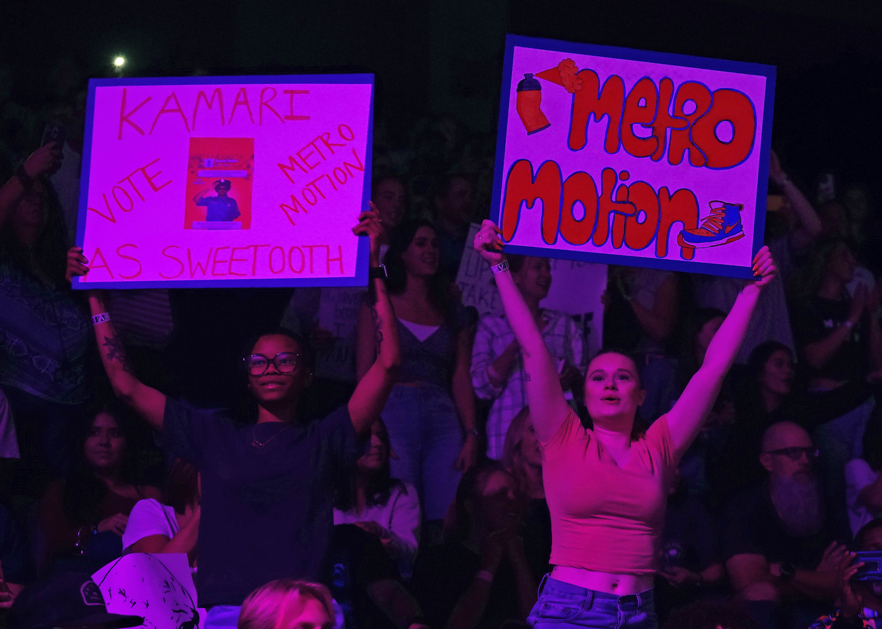 Students show their support for team Metro Motion during the Canyon Activities Board’s "Wicked"-themed Lip Sync Global Credit Union Arena on Nov. 13, 2025. -
