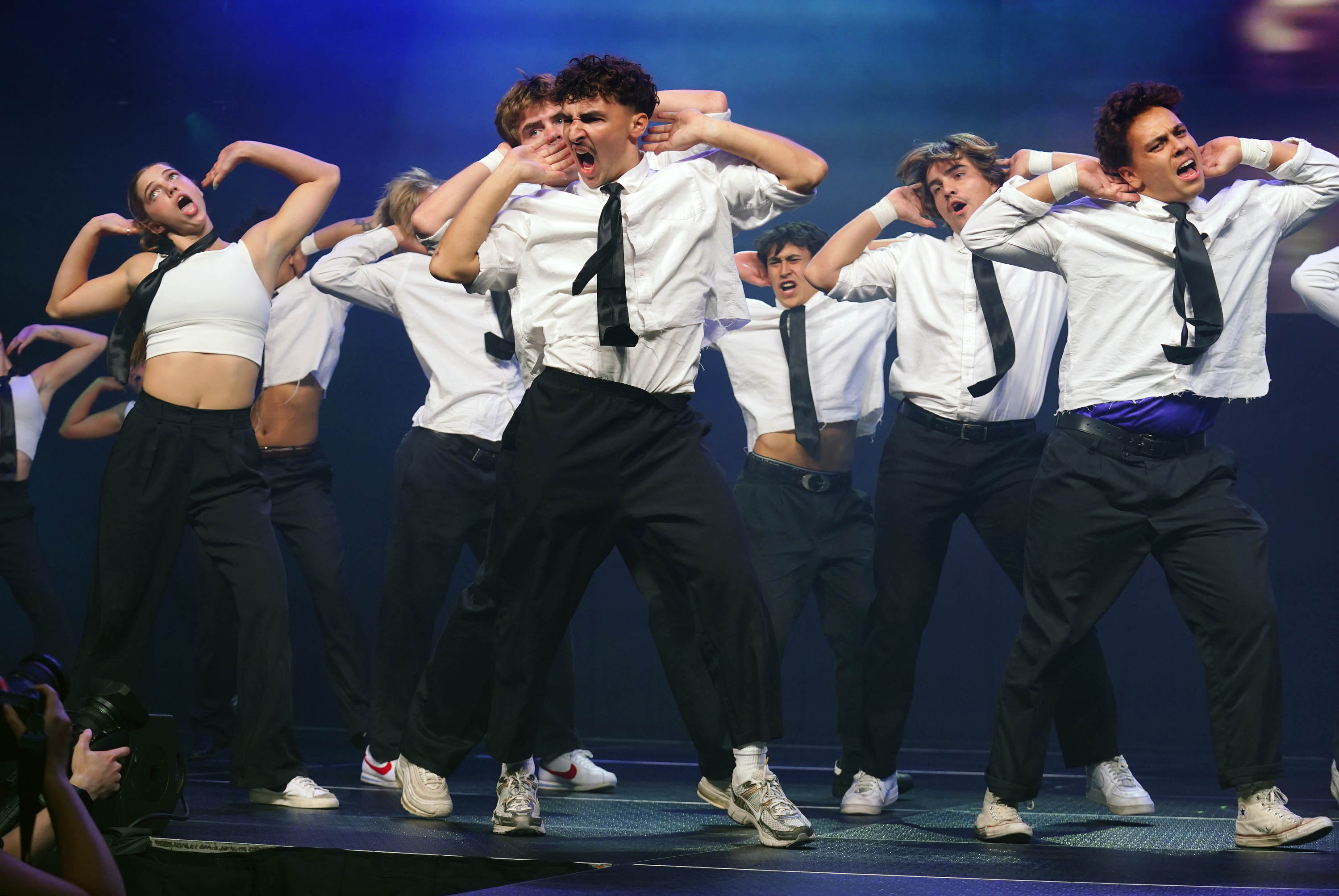 Deliverance celebrates with a group selfie after winning the Canyon Activities Board’s "Wicked"-themed Lip Sync at Global Credit Union Arena on Nov. 13, 2025. -