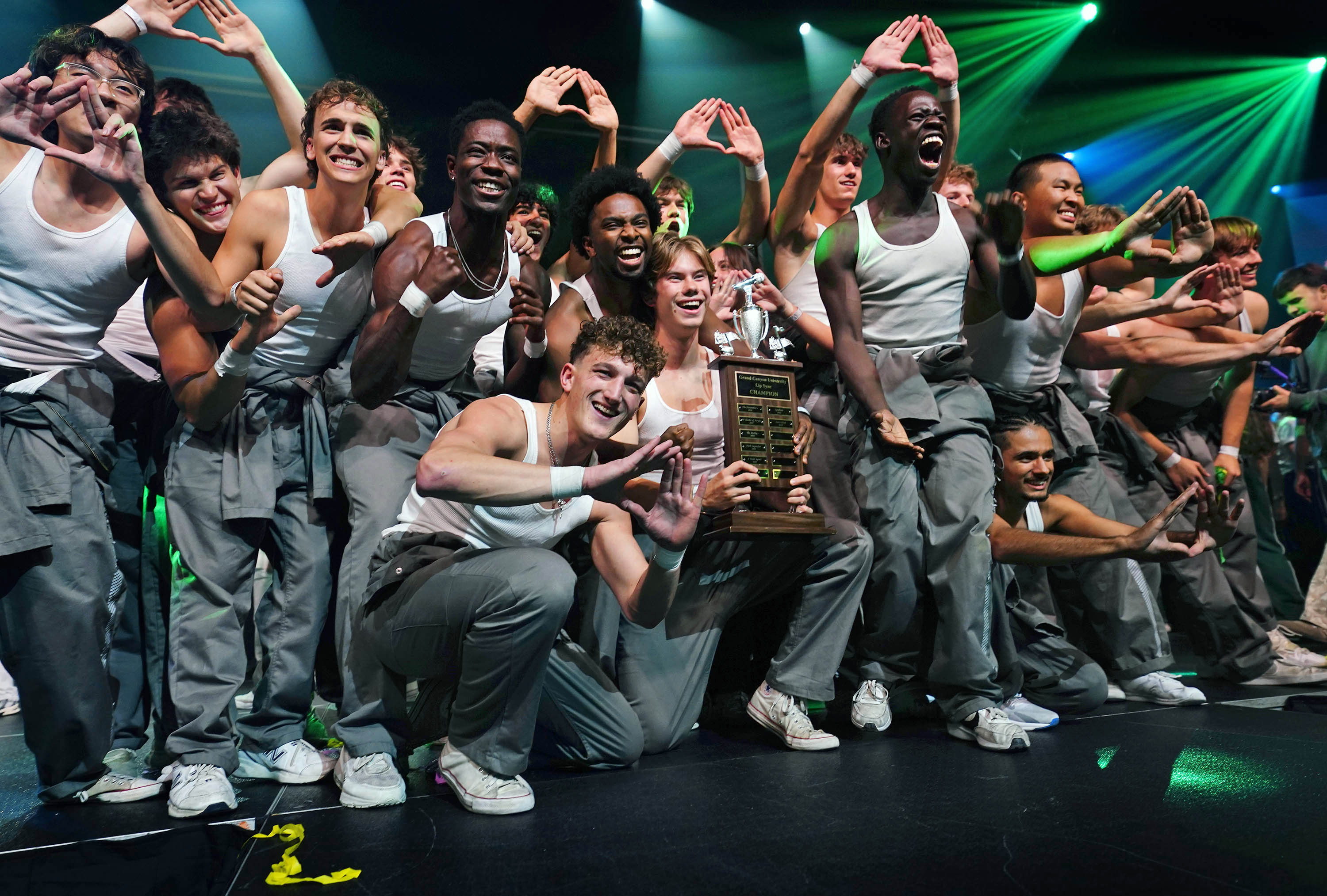 Deliverance celebrates winning the Canyon Activities Board’s "Wicked"-themed Lip Sync at Global Credit Union Arena on Nov. 13, 2025. -