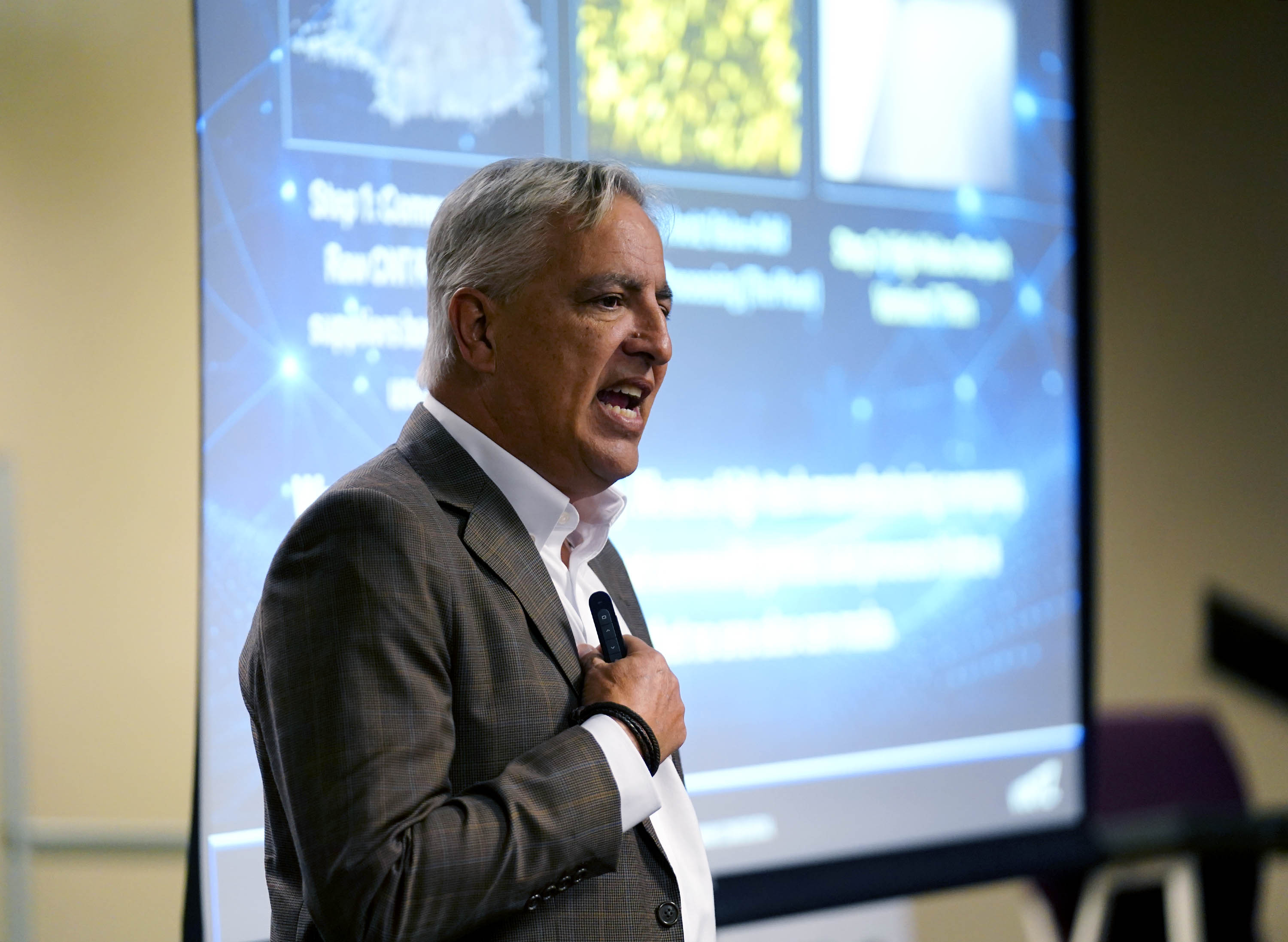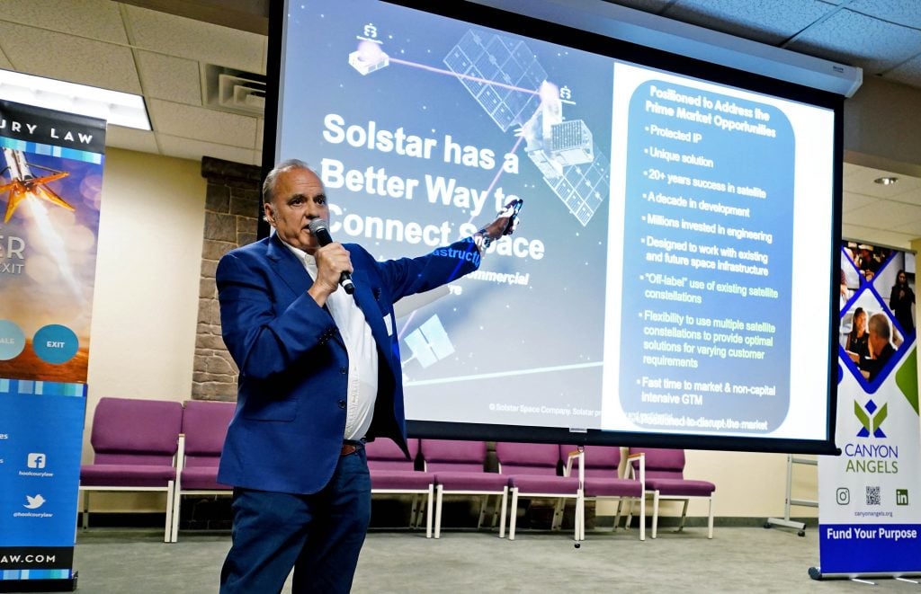 Solstar Founder & CEO Brian Barnett talks about his company during the Canyon Angels pitch event at Joshua North. April 8, 2026. -