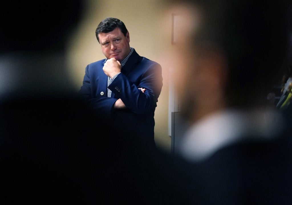 Colangelo College of Business professor of entrepreneurship Hereford Johnson listens as companies made their presentations during the Canyon Angels pitch event. April 8, 2026. -