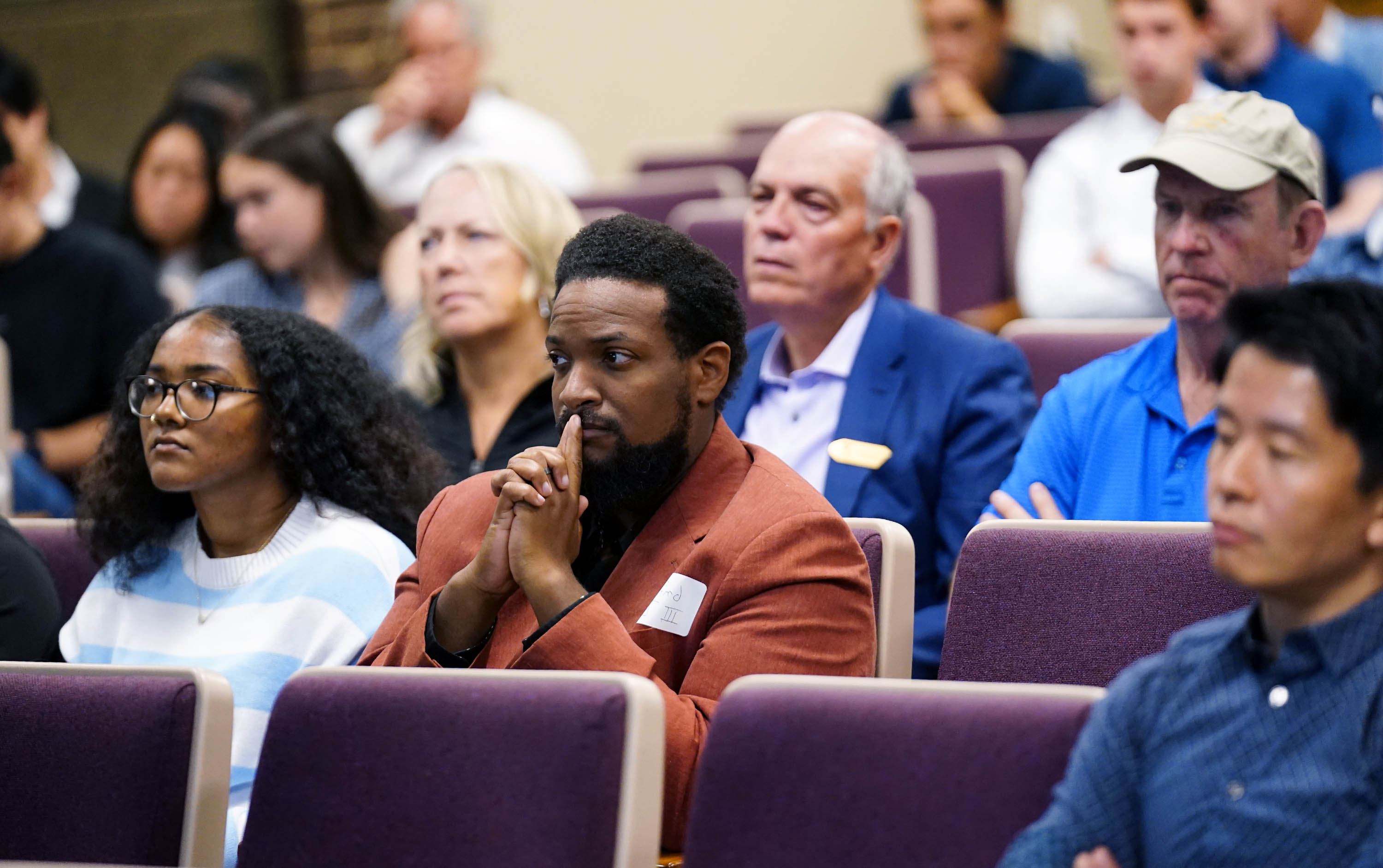 Canyon Angels founder Tim Kelley listens as students give their due diligence assessments of companies during the Canyon Angels pitch event at Joshua North. April 8, 2026. -