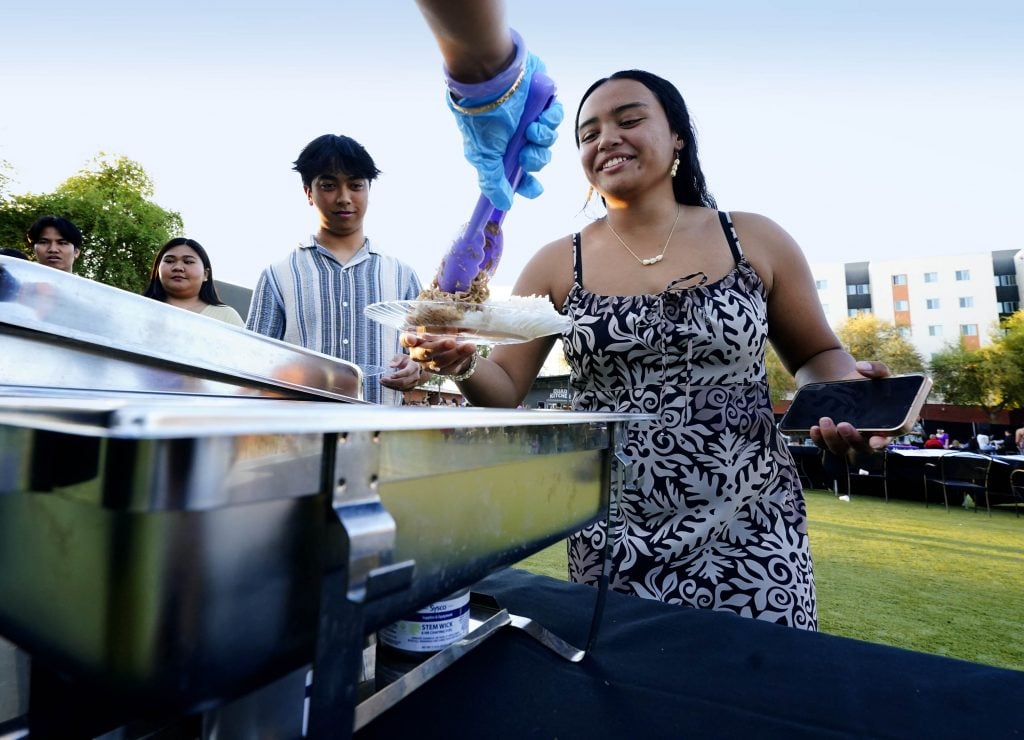 Students were treated to a variety of island foods including kalua pork during the Multicultural Office-sponsored Pasifika Fest at the Quad on April 9, 2025. -