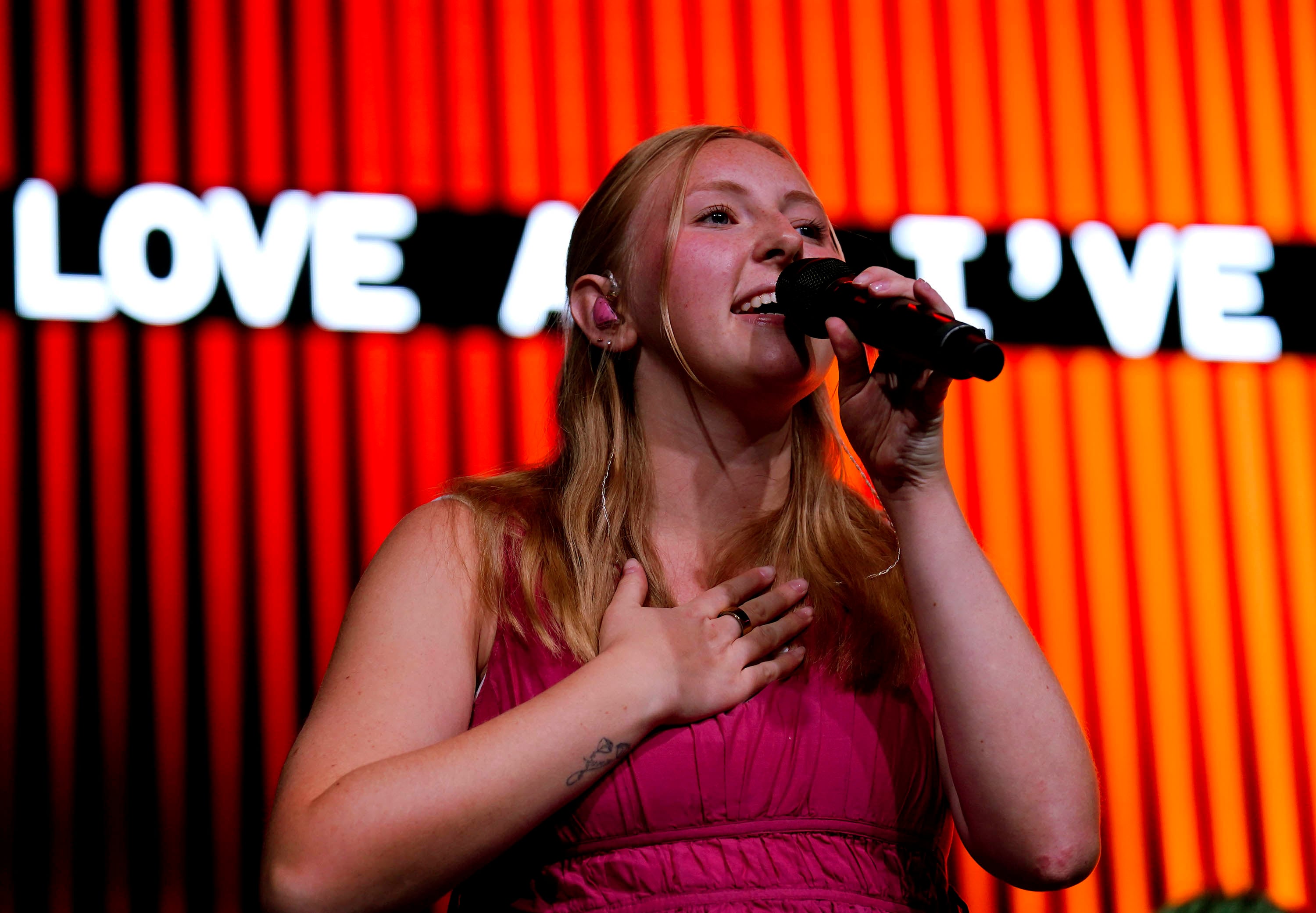 Maggie Farrington and the Worship team perform during Chapel at Global Credit Union Arena. March 30, 2026 -