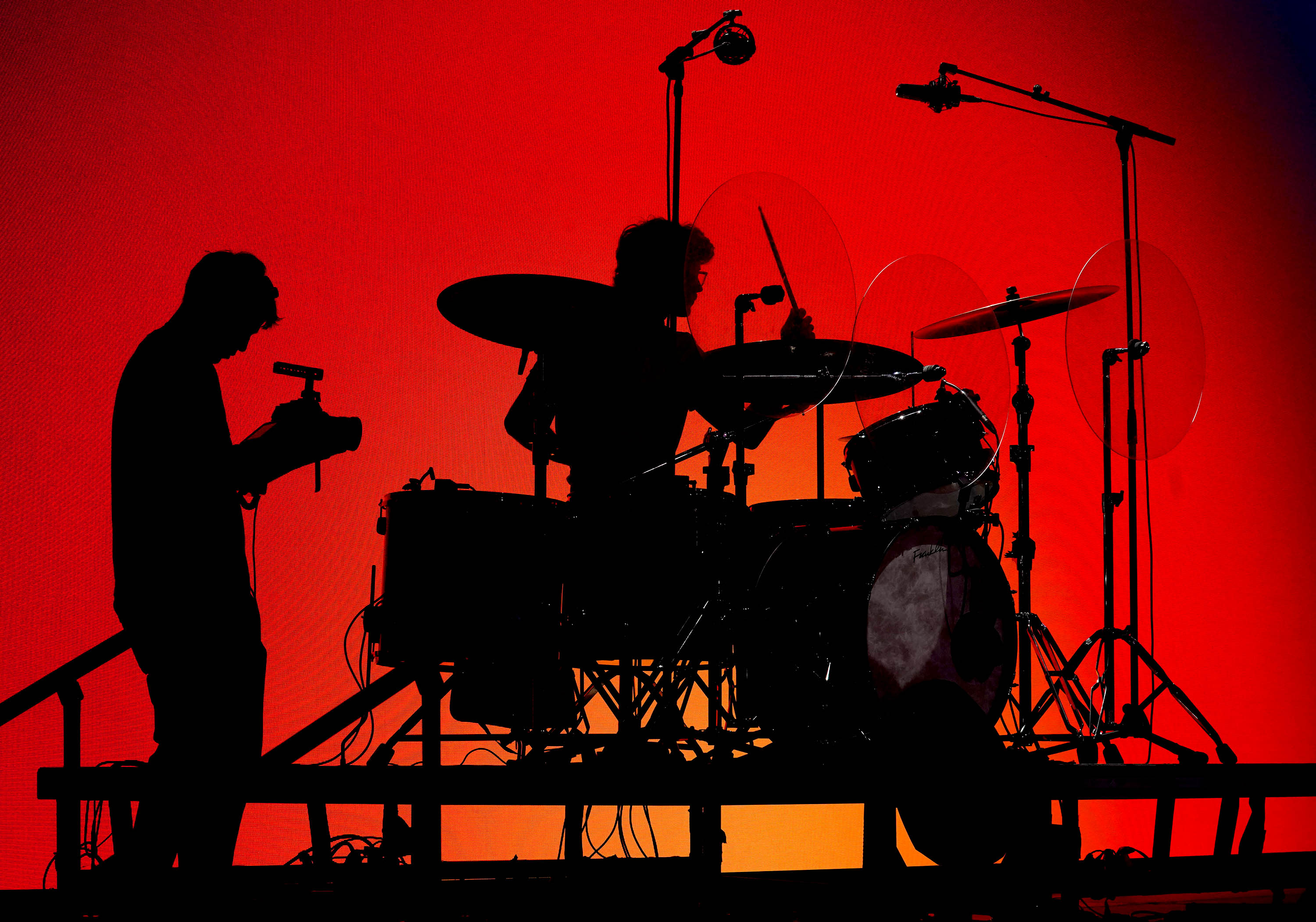 A member of the production crew captures Worship team drummer David Russell as he plays during Chapel at Global Credit Union Arena. March 30, 2026 -