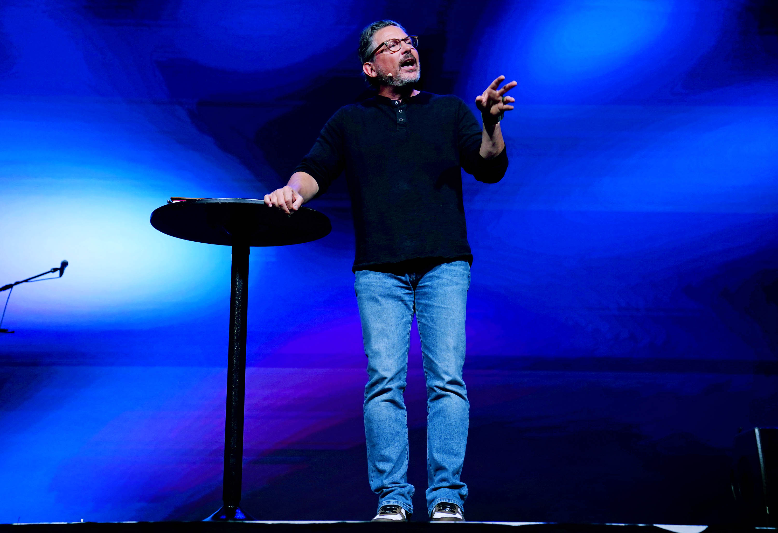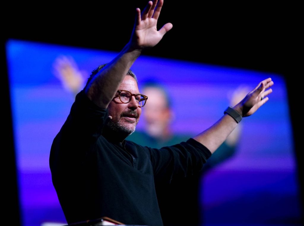 Sun Valley Community Church pastor Chad Moore speaks at Chapel on Monday in Global Credit Union Arena. March 30, 2026 -