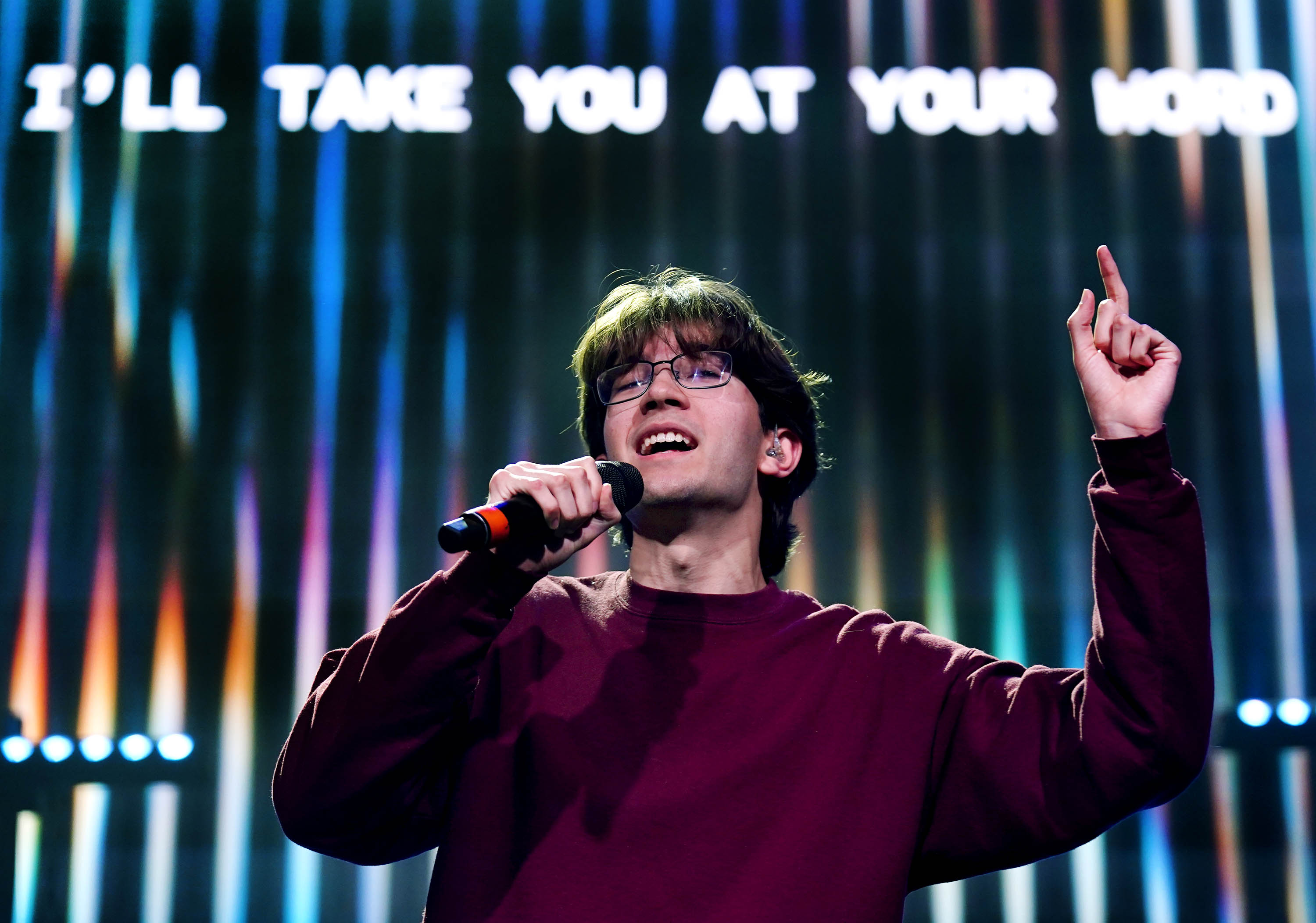 Asher Larson and the Worship team perform during Chapel on Monday at Global Credit Union Arena. Jan. 5, 2026. -