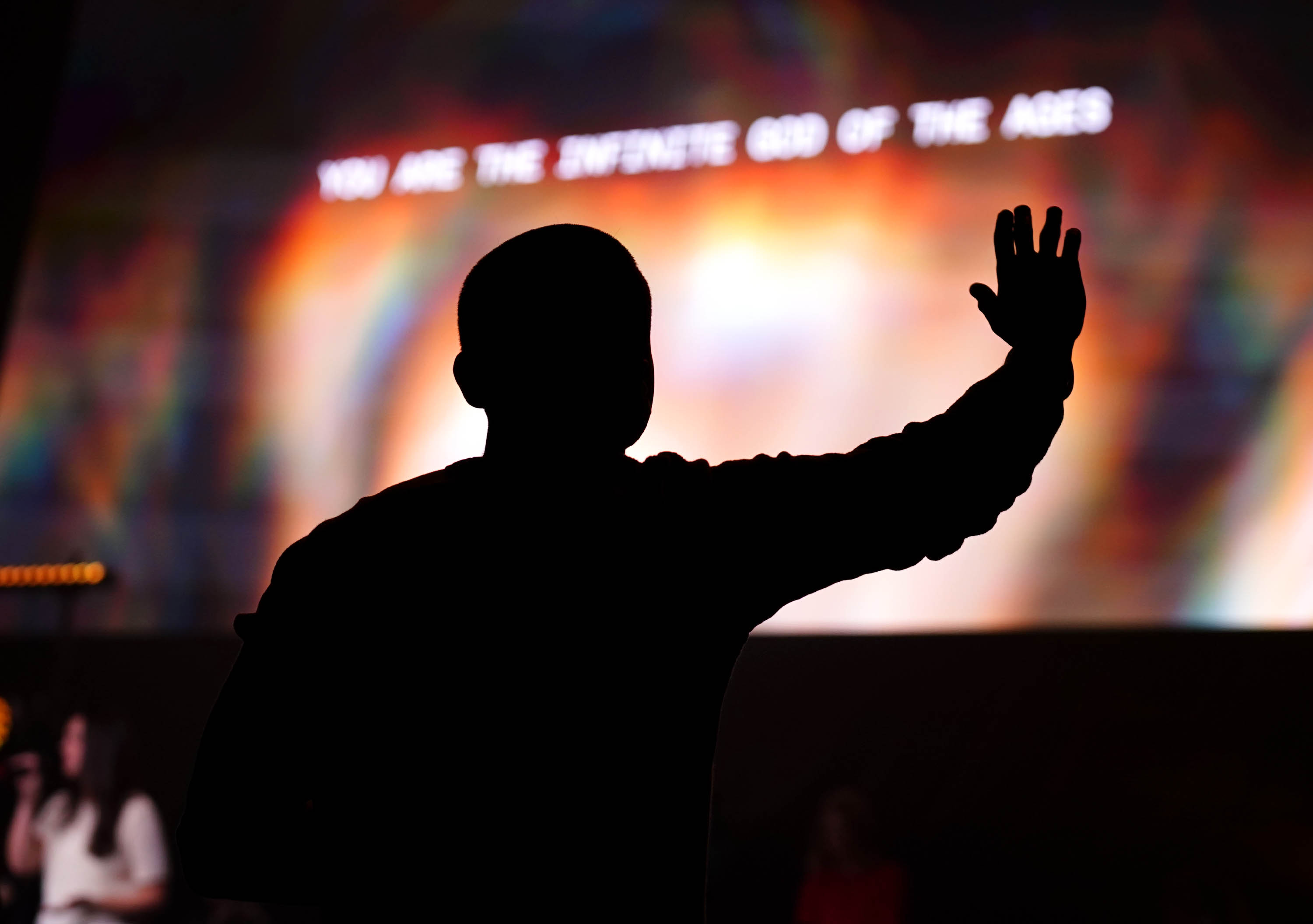 Students give praise as they sing along with the Worship team during Chapel on Monday at Global Credit Union Arena. Jan. 5, 2026. -