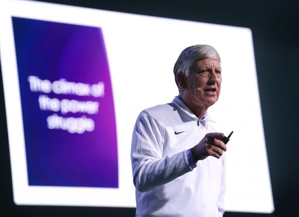 GCU President Brian Mueller warns about the dangers of power during Chapel at Global Credit Union Arena. Jan. 5, 2026. -