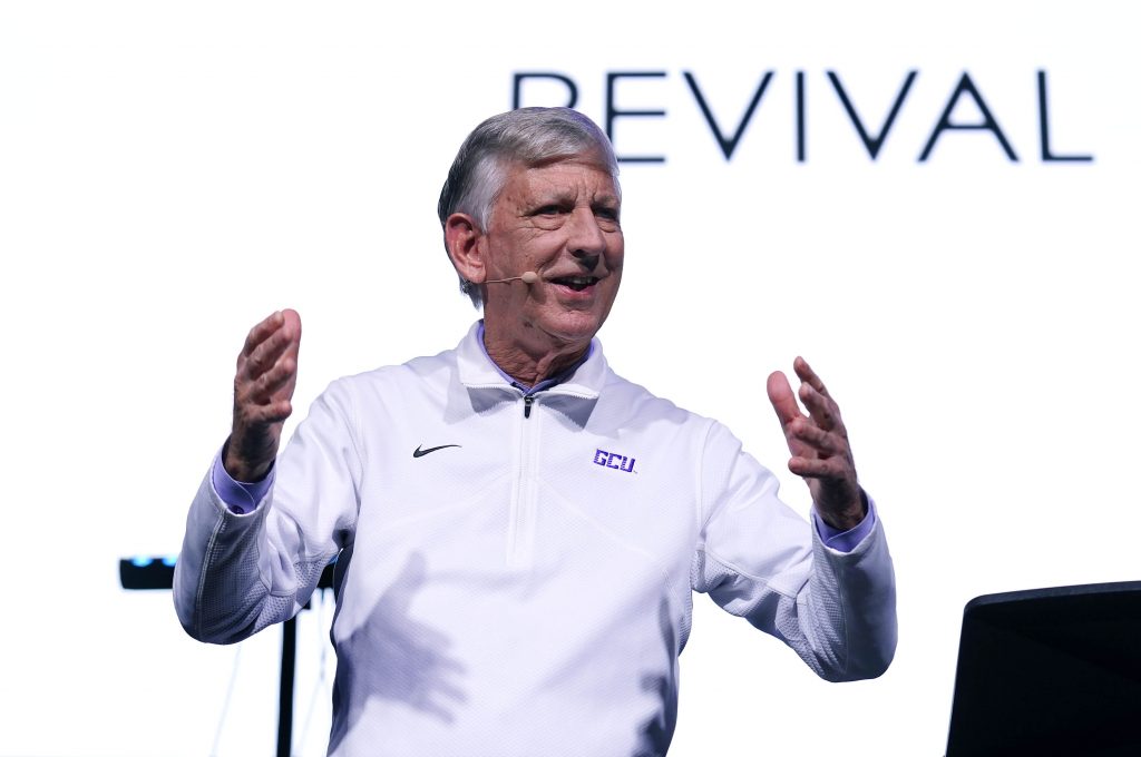 GCU President Brian Mueller speaks during Chapel at Global Credit Union Arena. Jan. 5, 2026.