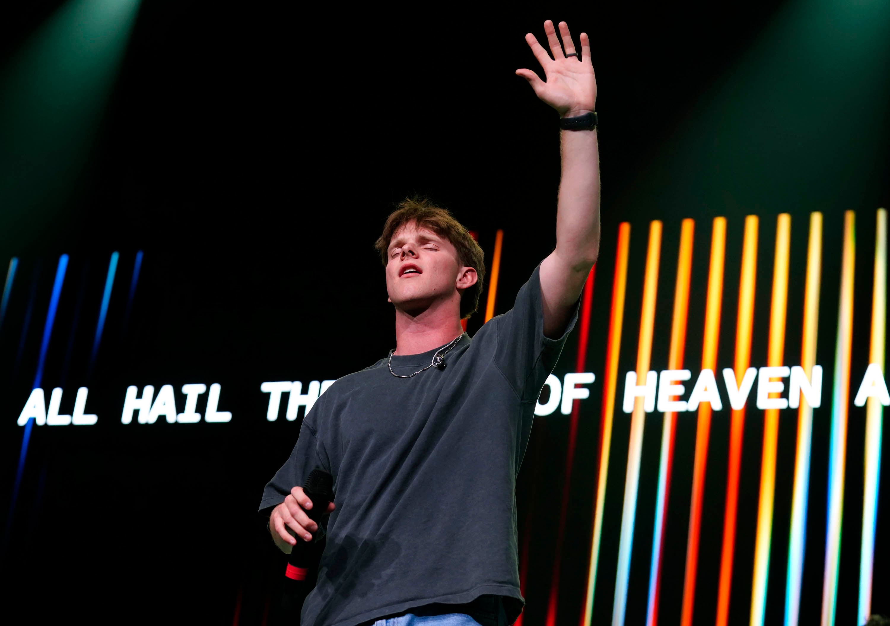 Gavin Webb and the Worship team give praise during Monday’s Chapel at Global Credit Union Arena. March 23, 2026 -
