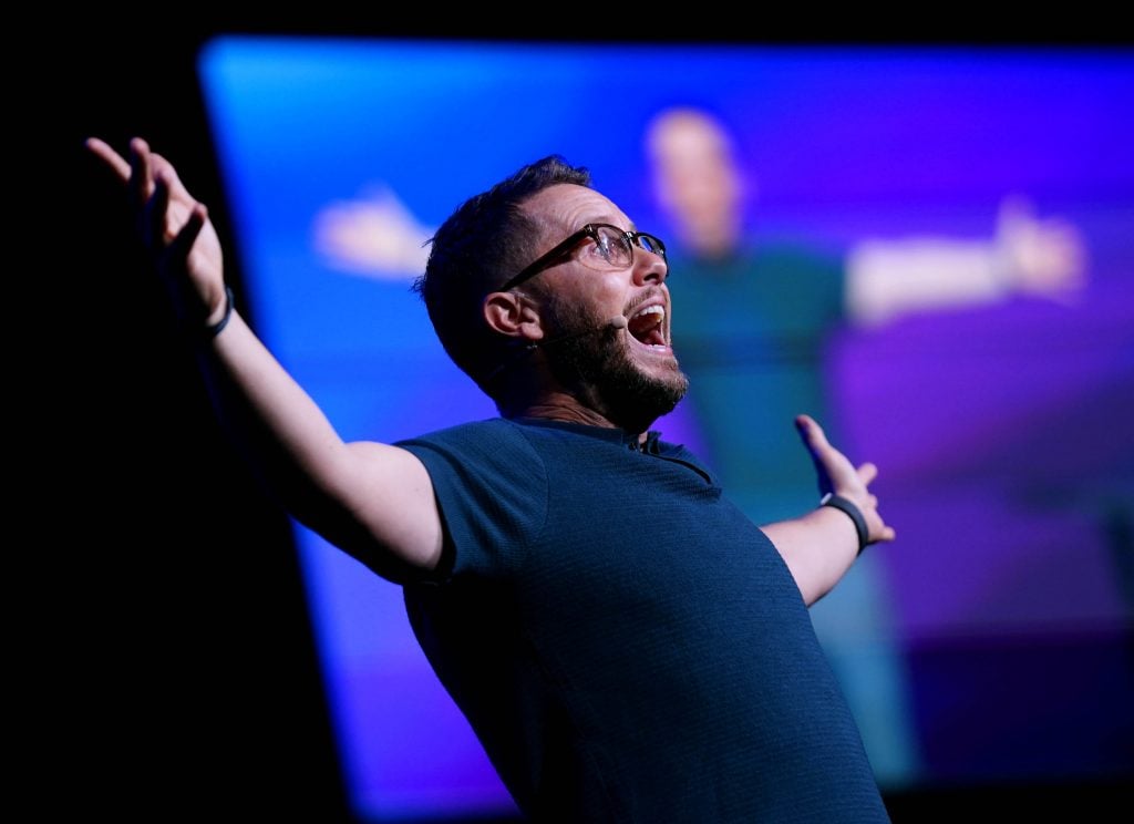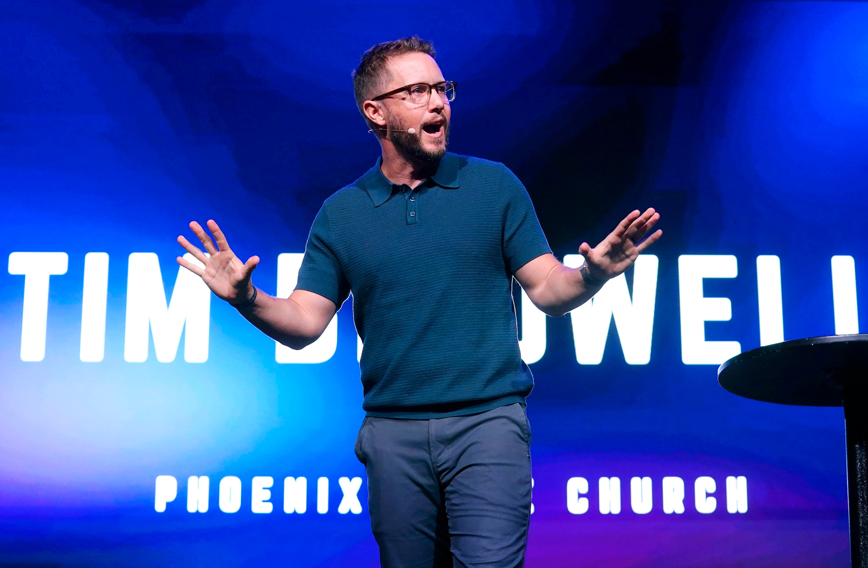 Phoenix Bible Church pastor Tim Birdwell speaks during Chapel on Monday at Global Credit Union Arena. March 23, 2026
