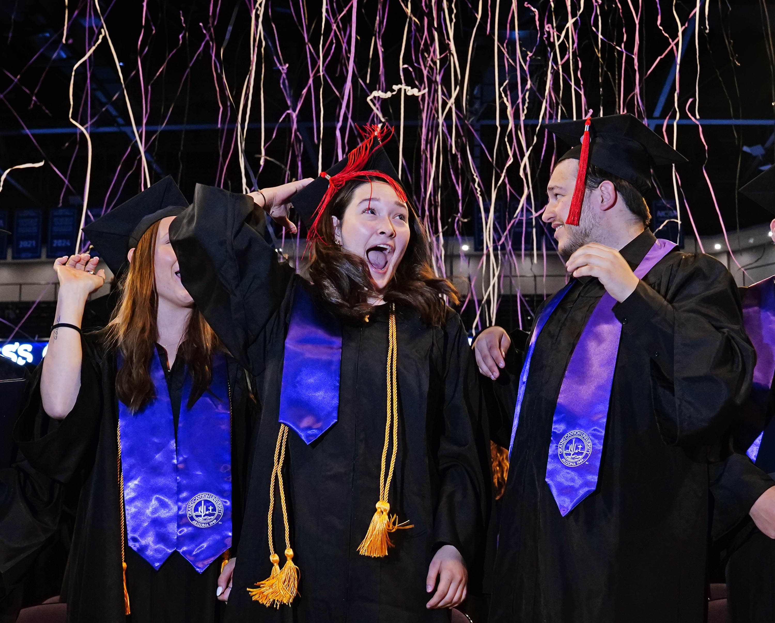 Graduates celebrate under a shower of streamers during Friday morning’s winter commencement ceremony on Dec. 12, 2025. -