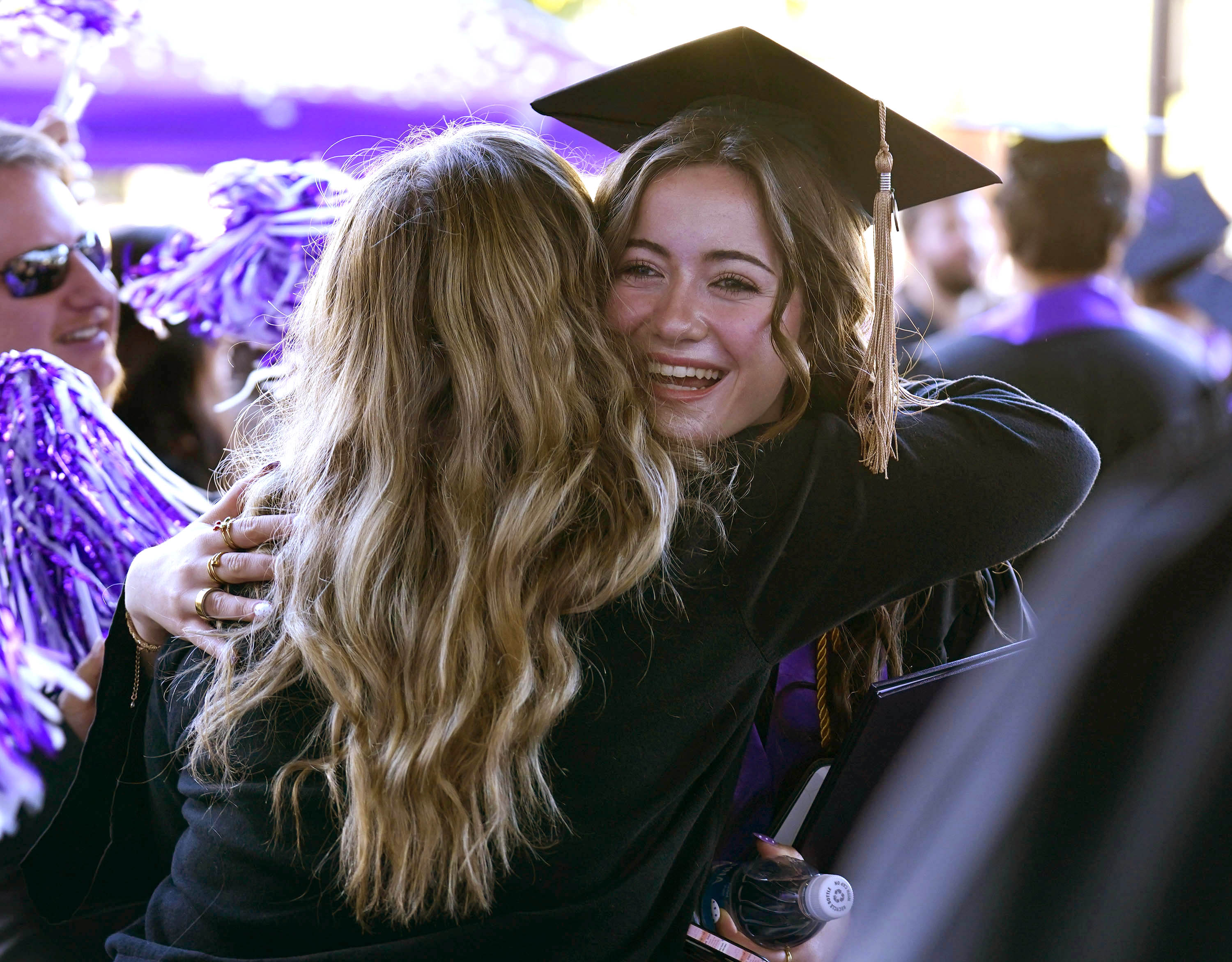 Graduates are greeted with hugs as they exit the arena during Friday morning’s winter commencement ceremony on Dec. 12, 2025. -