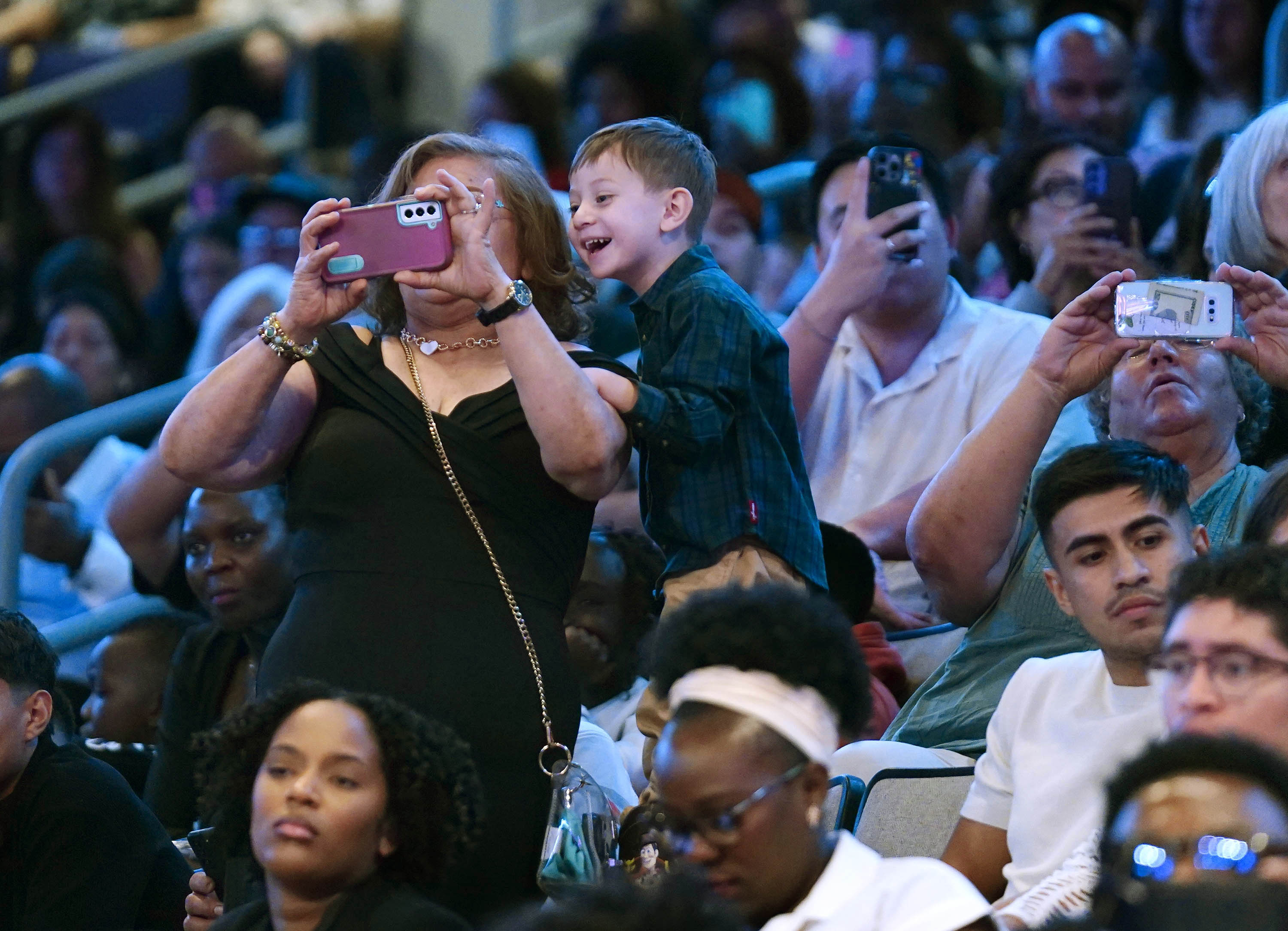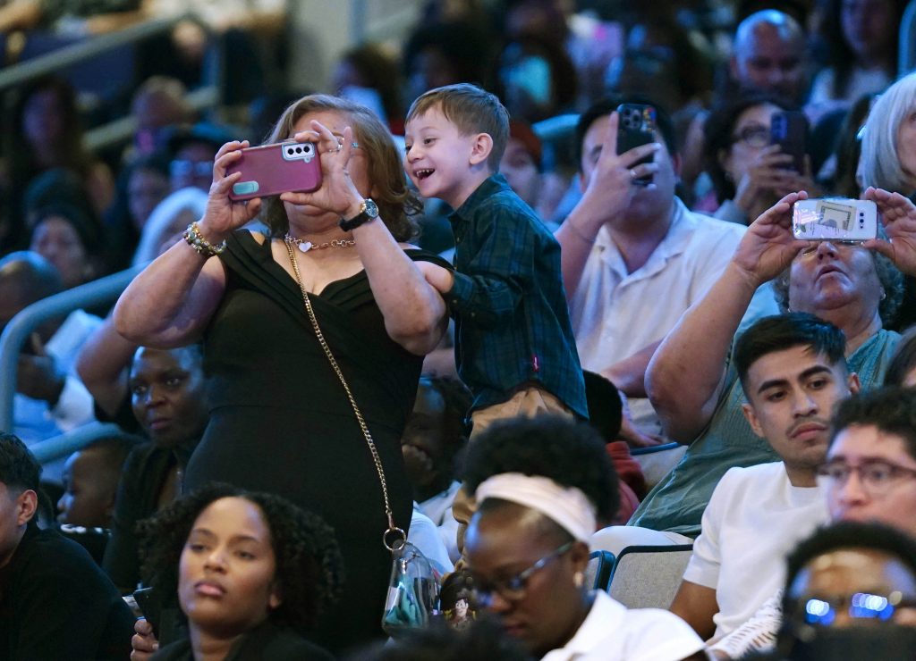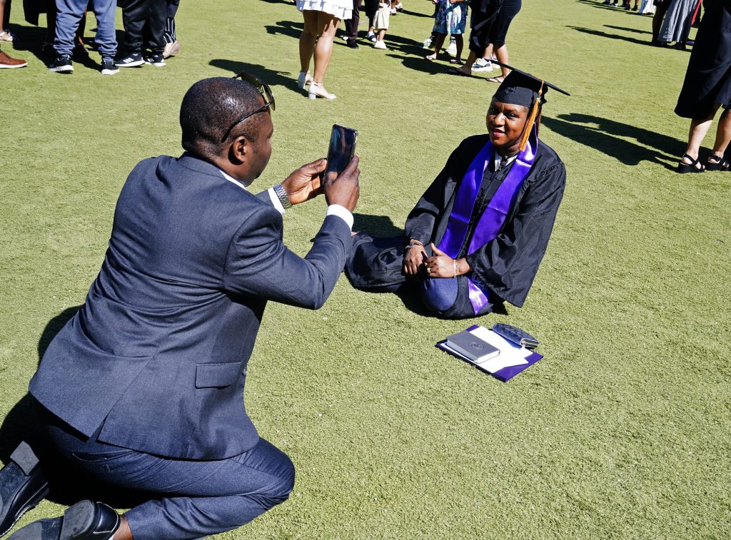 Family members take photos of their graduates during the Thursday morning commencement ceremony for online and cohort students at Global Credit Union Arena on Oct. 16, 2025. -