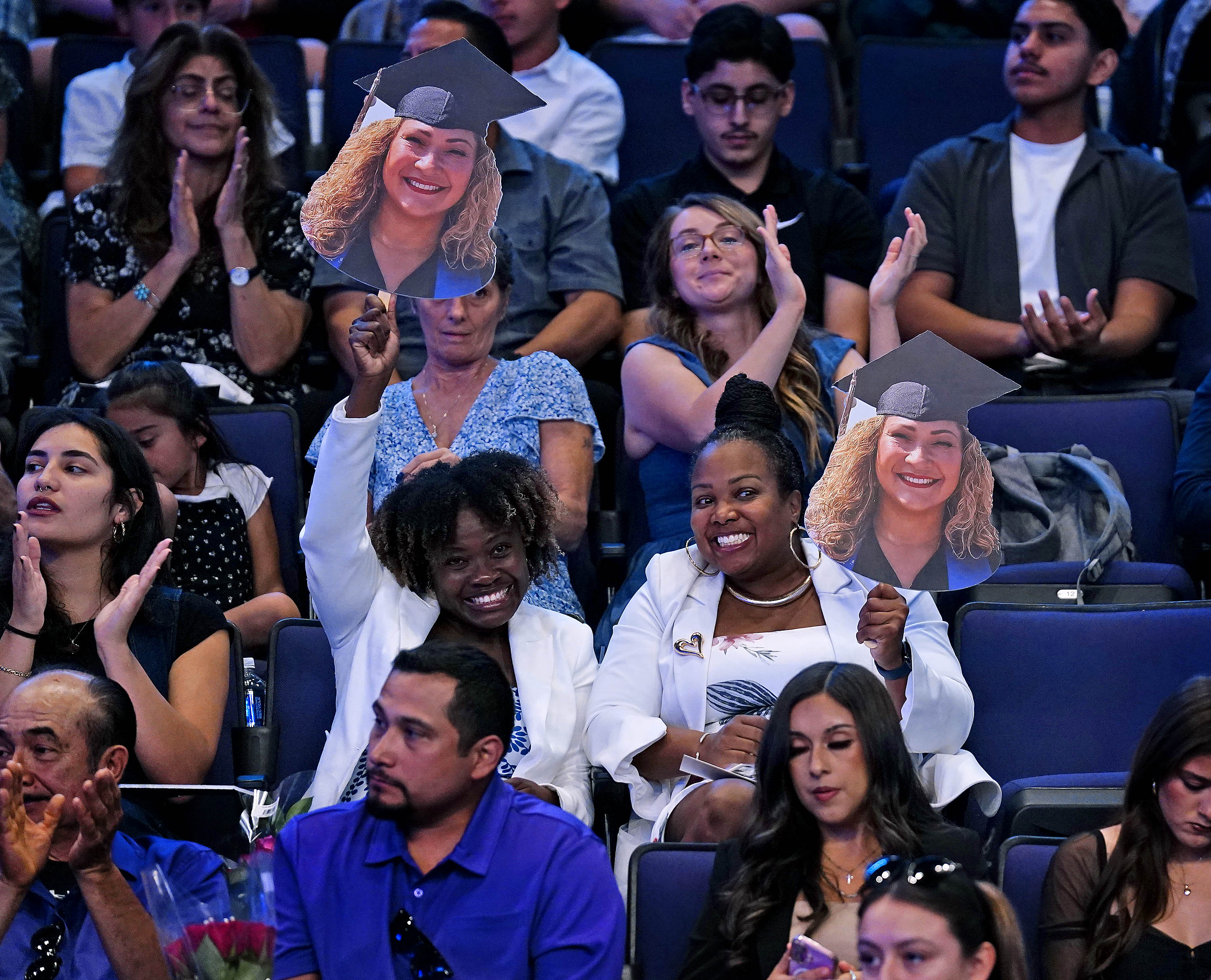 Friends and family members support their graduates during the Thursday afternoon commencement ceremony for online and cohort students at Global Credit Union Arena on Oct. 16, 2025. -