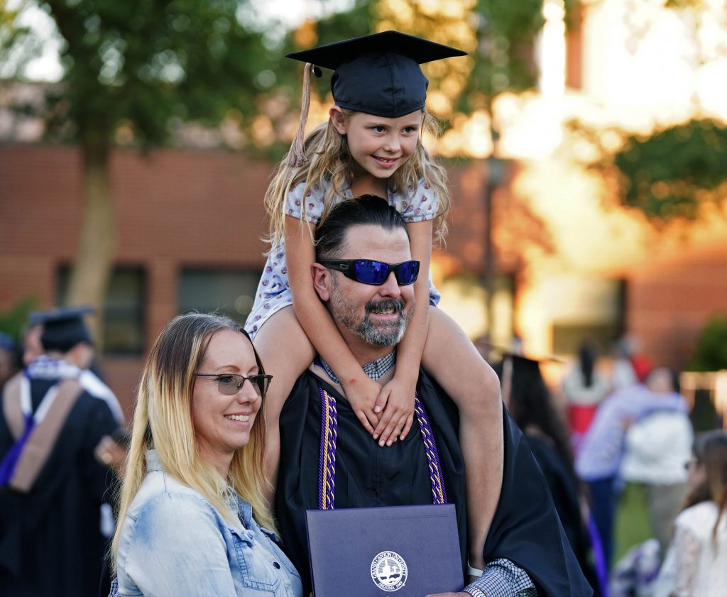 A graduate and her family during the Thursday afternoon commencement ceremony for online and cohort students at Global Credit Union Arena on Oct. 16, 2025. -
