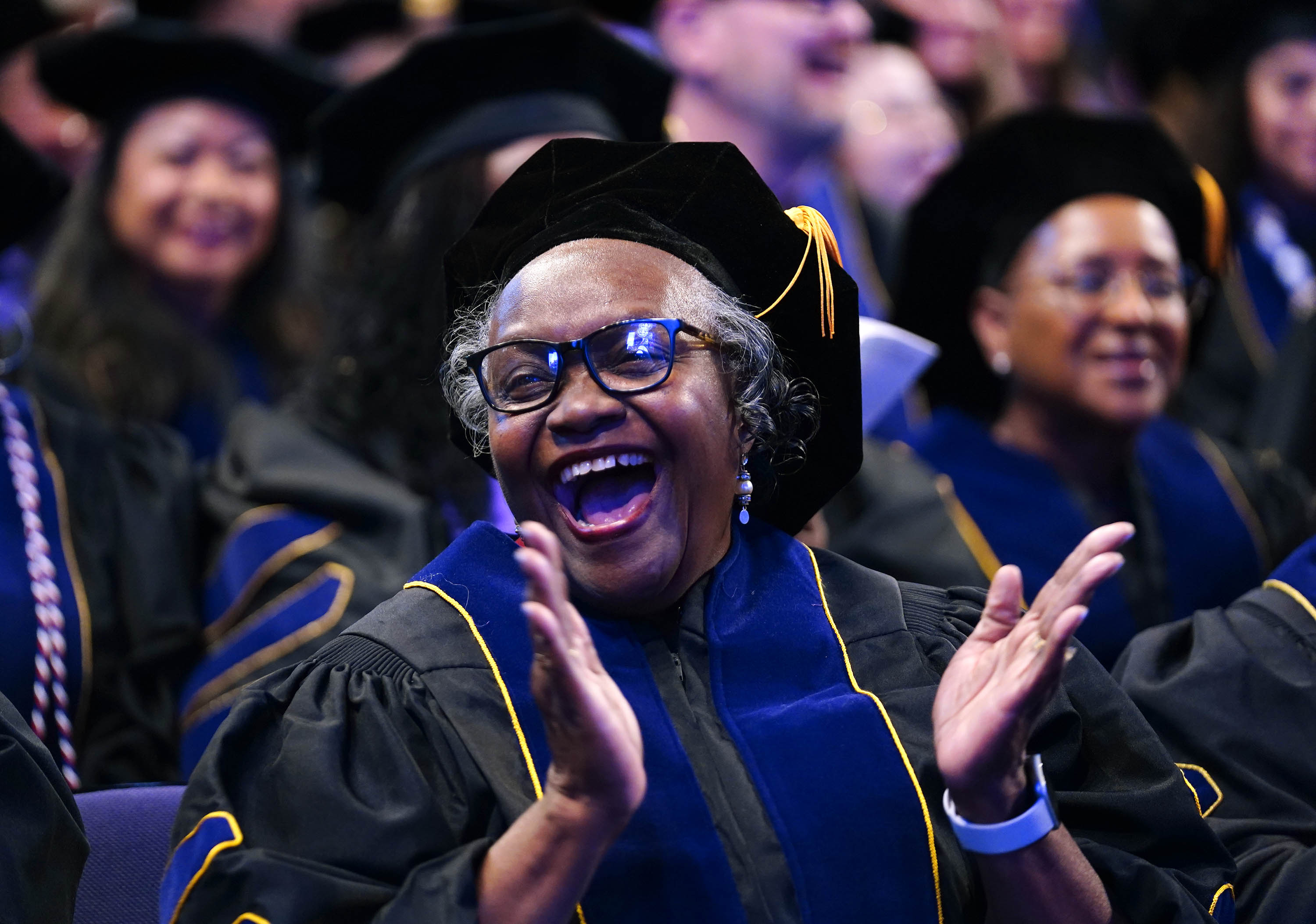 The second of six fall commencement ceremonies on Wednesday afternoon honored master's and doctoral graduates from the colleges of Doctoral Studies, Arts and Media, and Theology, as well as bachelor's graduates from the College of Humanities and Social Sciences.