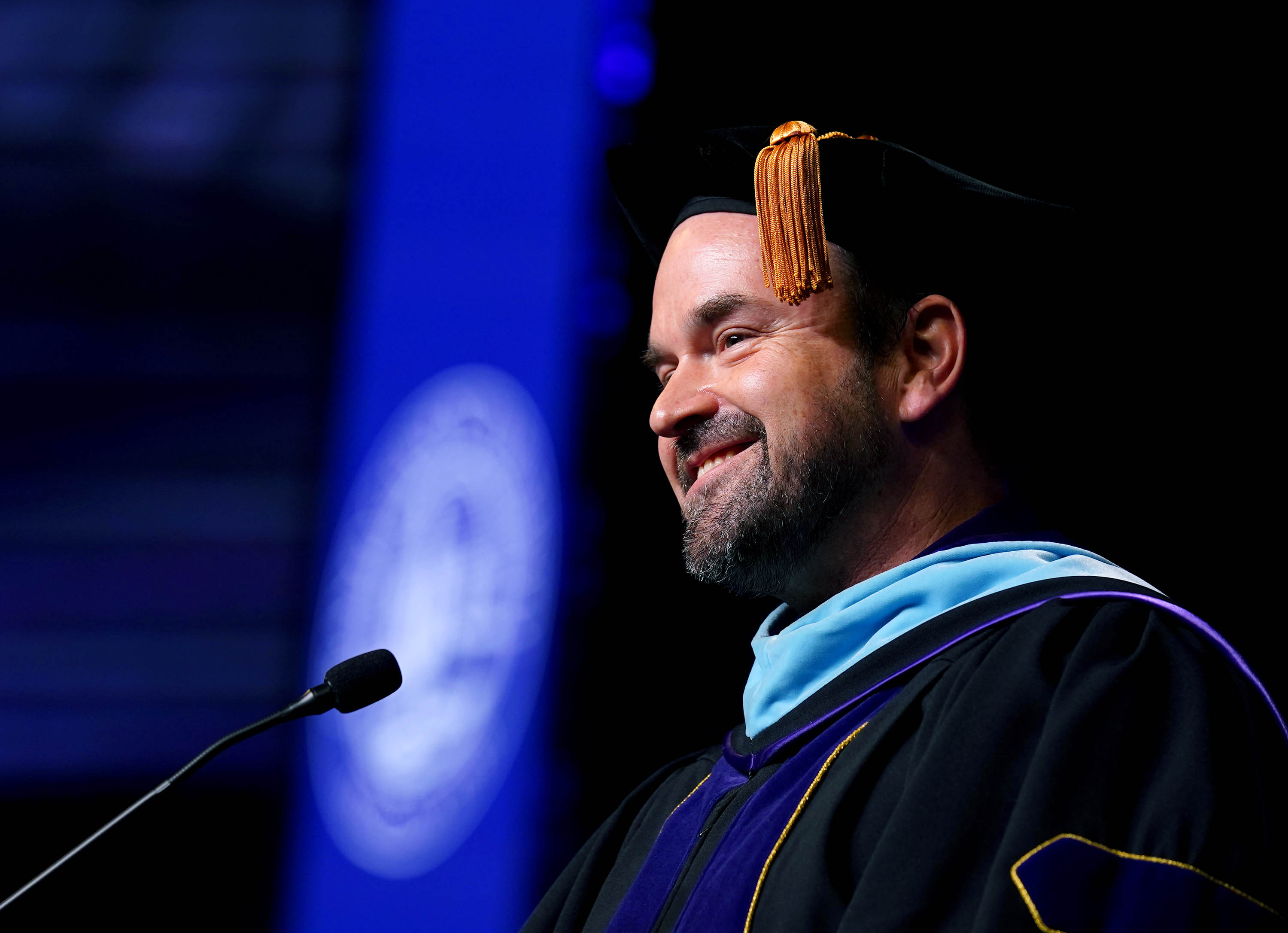 Dr. Michael Berger addresses College of Doctoral Studies graduates during the Wednesday afternoon fall commencement ceremony. -