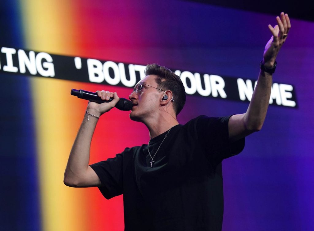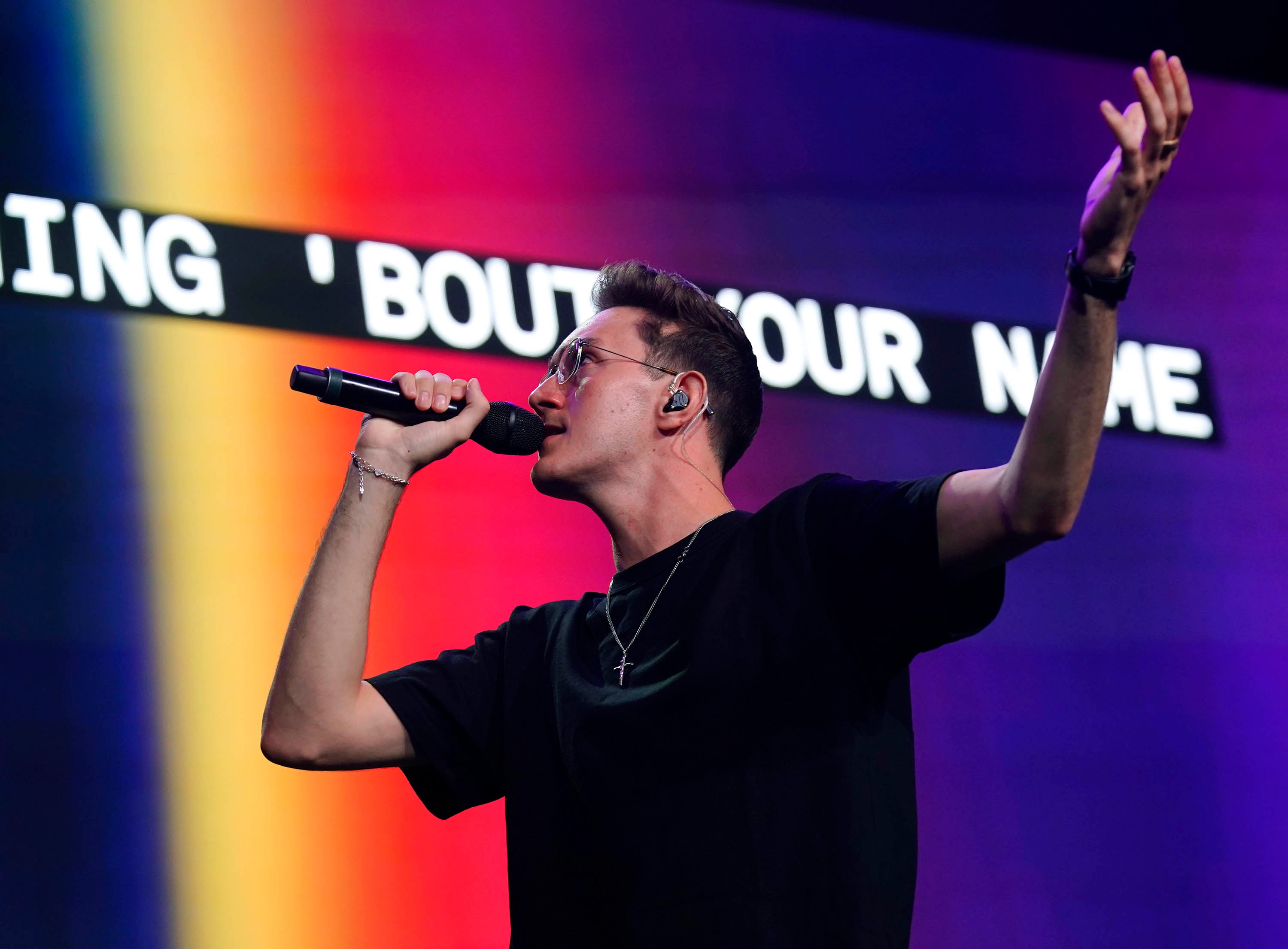Kaden Groce and the Worship team perform during Monday’s musical worship Chapel at Global Credit Union Arena. April 6, 2026. -