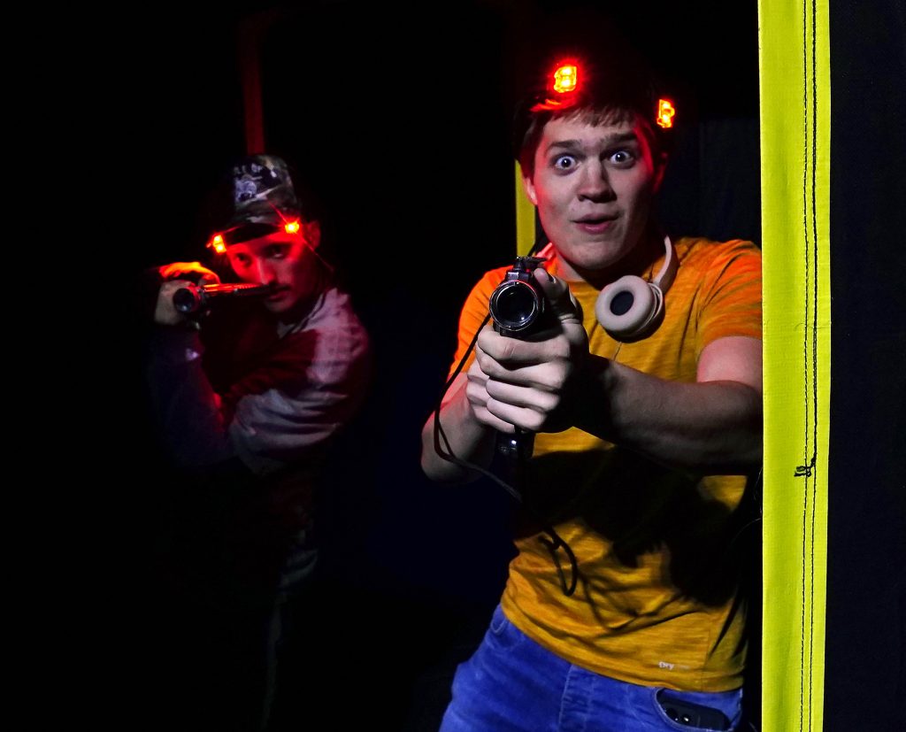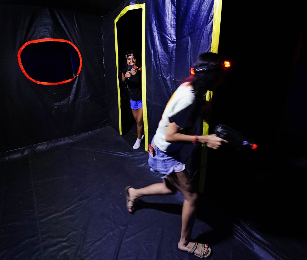 Students are unsure of what’s around every corner of the inflatable, maze-like course during the Canyon Activities Board-sponsored Ghostbusters Laser Tag at Antelope Gymnasium on Oct. 22, 2025. -