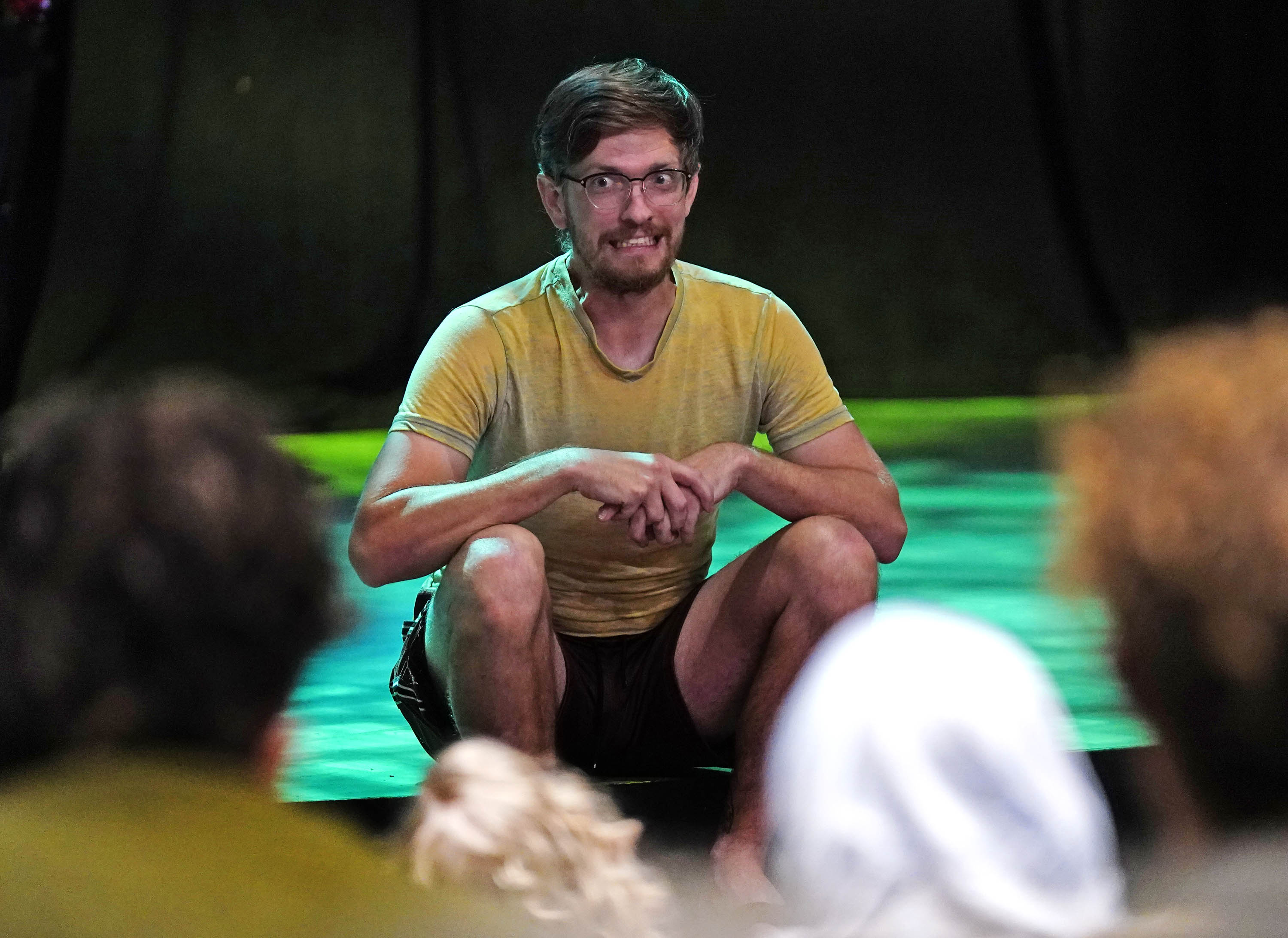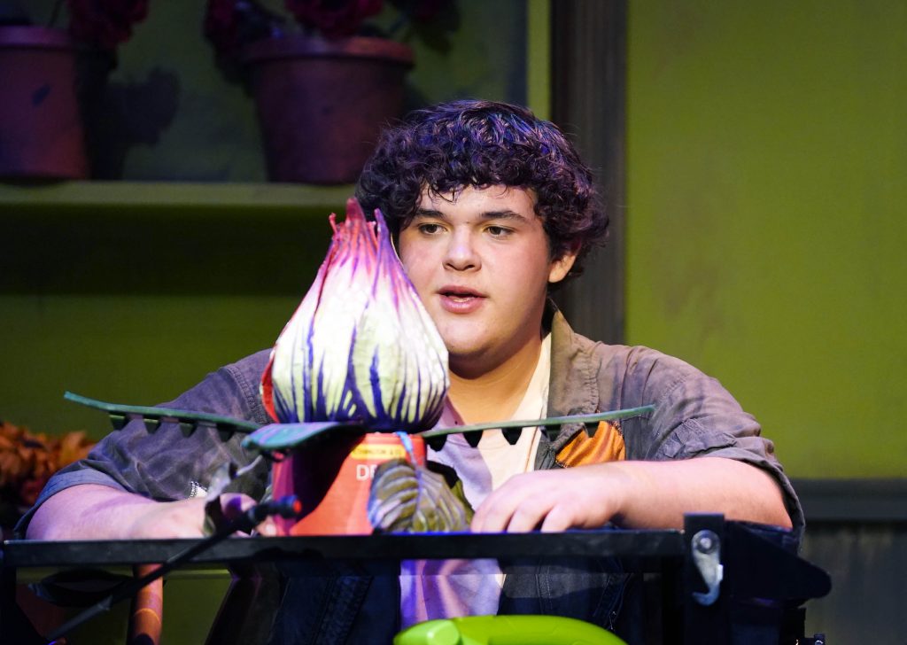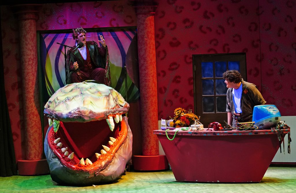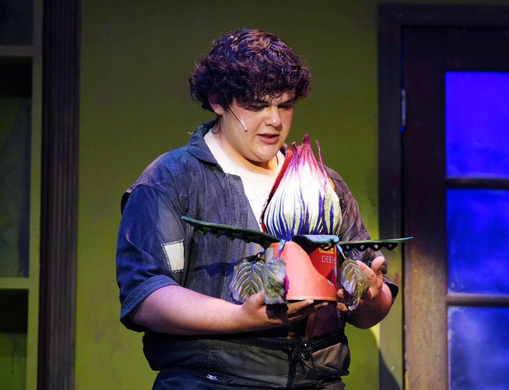 Seymour (Erick Resendiz) learns that Audrey II can talk during a dress rehearsal for the theatre department’s production of “Little Shop of Horrors” at Ethington Theatre on Nov. 5, 2025. -