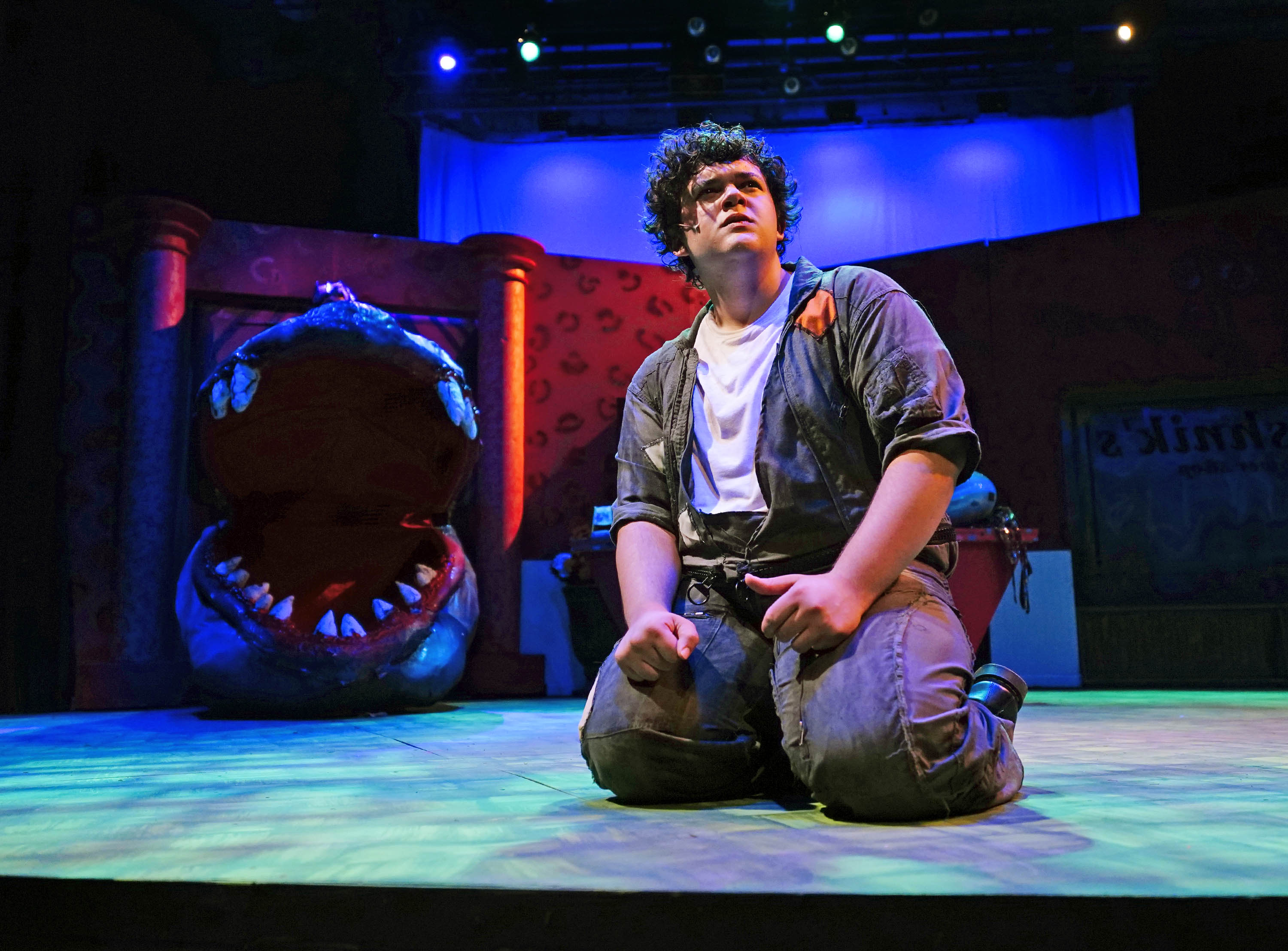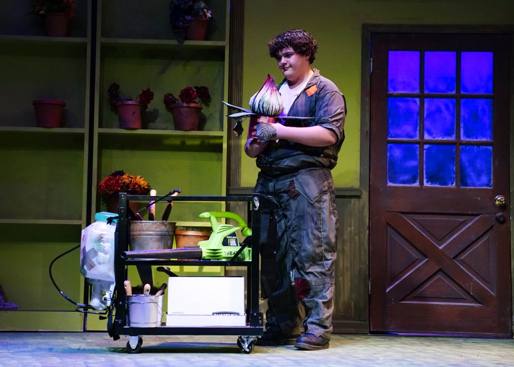 Seymour (Erick Resendiz) realizes what he must do to Audrey II during a dress rehearsal of the theatre department’s production of “Little Shop of Horrors” at Ethington Theatre on Nov. 5, 2025. -