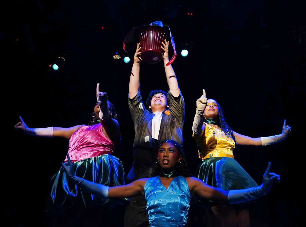 Seymour (Erick Resendiz) and the Ronnettes with Audrey II during a dress rehearsal for the theatre department’s production of “Little Shop of Horrors” at Ethington Theatre on Nov. 5, 2025. -
