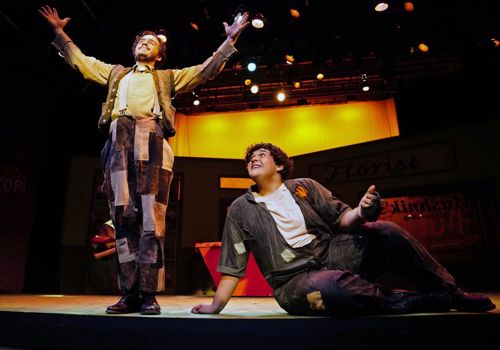Seymour (Erick Resendiz) and Mr. Mushnik (Caleb Moran) during a dress rehearsal for the theatre department’s production of “Little Shop of Horrors” at Ethington Theatre on Nov. 5, 2025. -