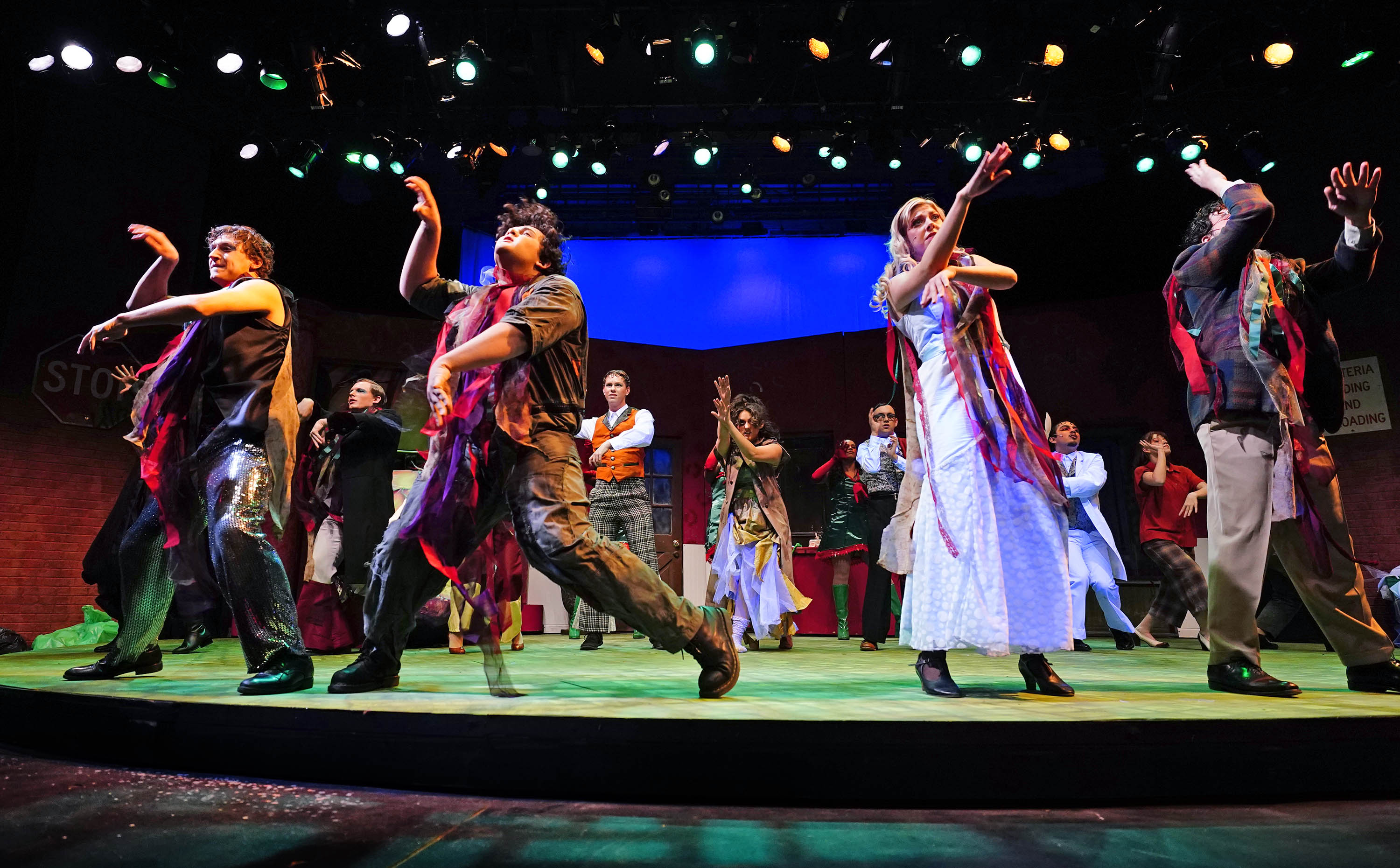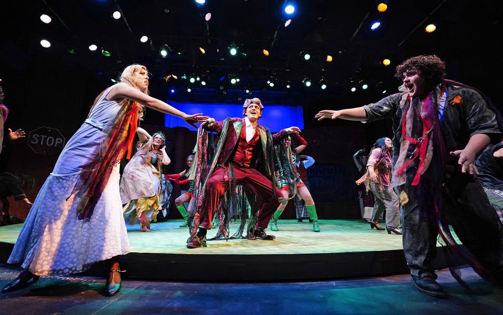 Dance scene during a dress rehearsal for the theatre department’s production of “Little Shop of Horrors” at Ethington Theatre on Nov. 5, 2025. -