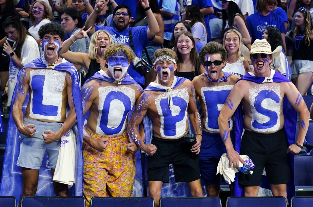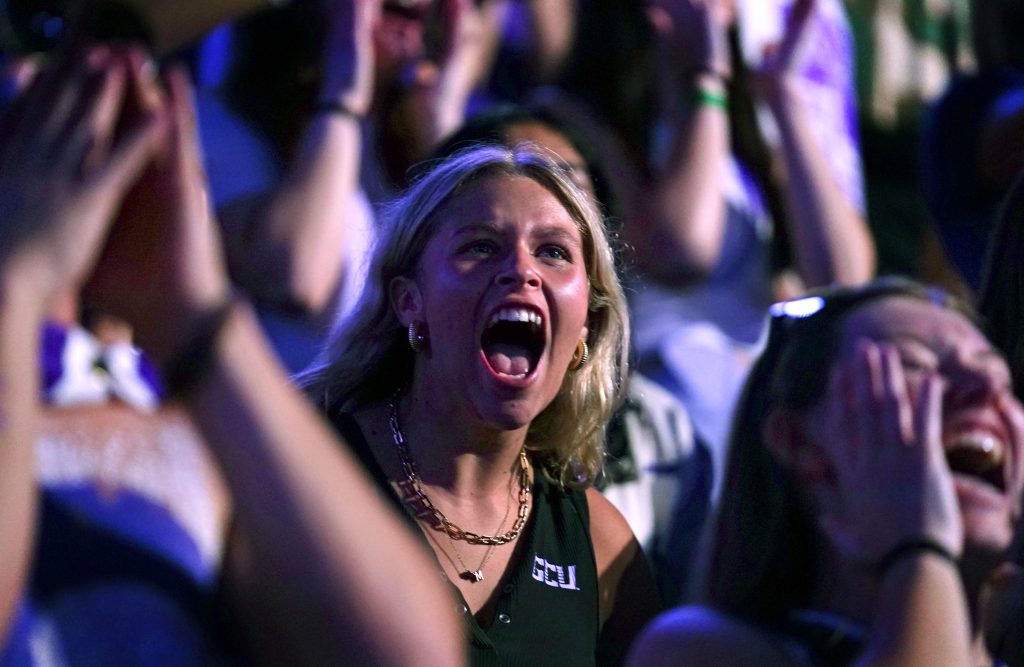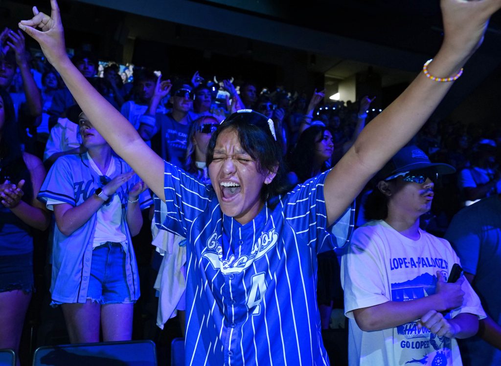 Students plead for Stampede during Lope-A-Palooza at Global Credit Union Arena on Aug. 29, 2025. -